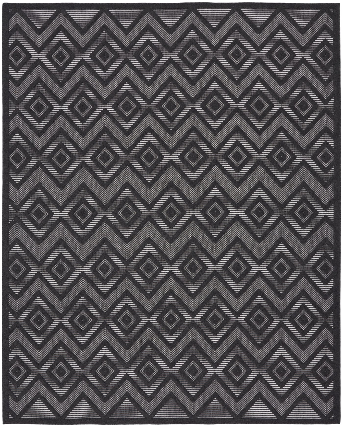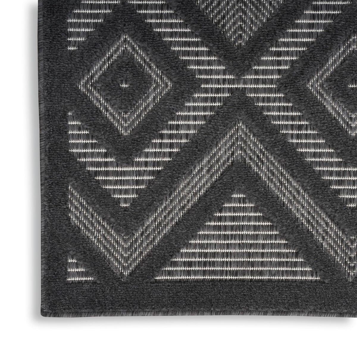 Enhance your indoor or outdoor space with the contemporary appeal of an outdoor rug from the Nourison Versatile Collection. These dynamically textured rugs feature a flatwoven ground with raised designs that feel incredibly soft to the touch, adding an instant layer of depth to just about any space – from living room and dining room to patio, porch, or deck. Machine-made from a blend of durable polypropylene and polyester fibers that are easy to clean: just hose rinse and air dry. This charcoal grey and black Nourison Versatile Collection rug brings inviting style to your favorite indoor or outdoor space. With a raised diamond design that stands out beautifully against its flatwoven ground, this outdoor rug enhances your space with delightful texture and modern appeal. Machine-made from durable, easy-to-clean fibers, Versatile is great for high-traffic areas inside the home as well as all seasons spent outdoors.