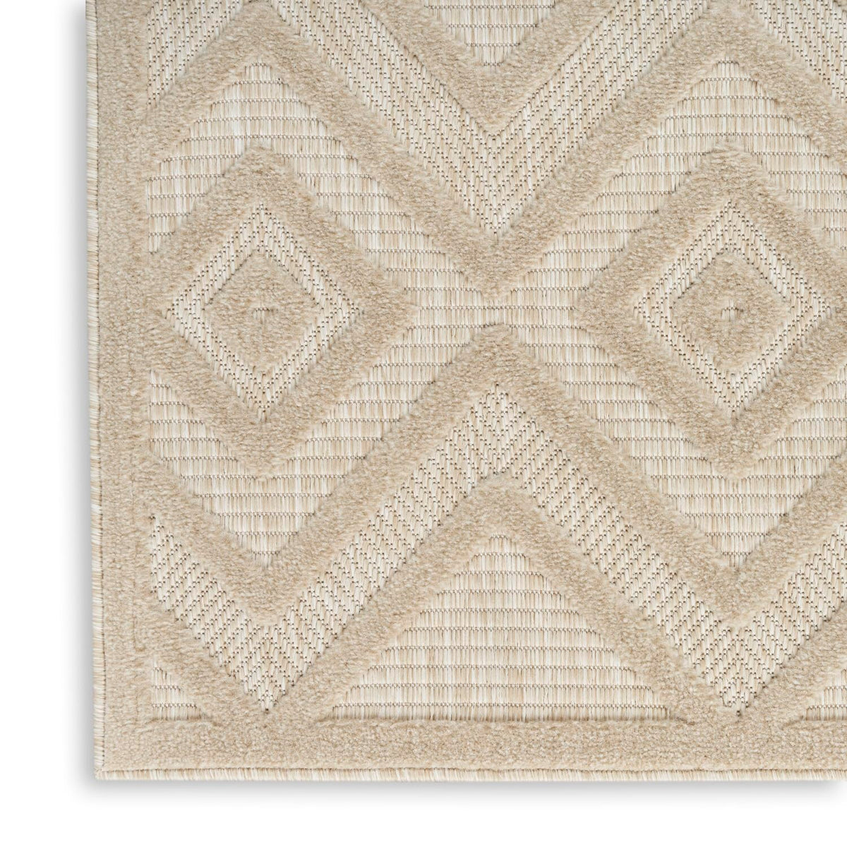 Enhance your indoor or outdoor space with the contemporary appeal of an outdoor rug from the Nourison Versatile Collection. These dynamically textured rugs feature a flatwoven ground with raised designs that feel incredibly soft to the touch, adding an instant layer of depth to just about any space – from living room and dining room to patio, porch, or deck. Machine-made from a blend of durable polypropylene and polyester fibers that are easy to clean: just hose rinse and air dry. This Nourison Versatile Collection rug brings inviting style to your favorite indoor or outdoor space. With a raised diamond design in earthy cream tones that stands out beautifully against its flatwoven ground, this outdoor rug enhances your space with delightful texture and modern appeal. Machine-made from durable, easy-to-clean fibers, Versatile is great for high-traffic areas inside the home as well as all seasons spent outdoors.