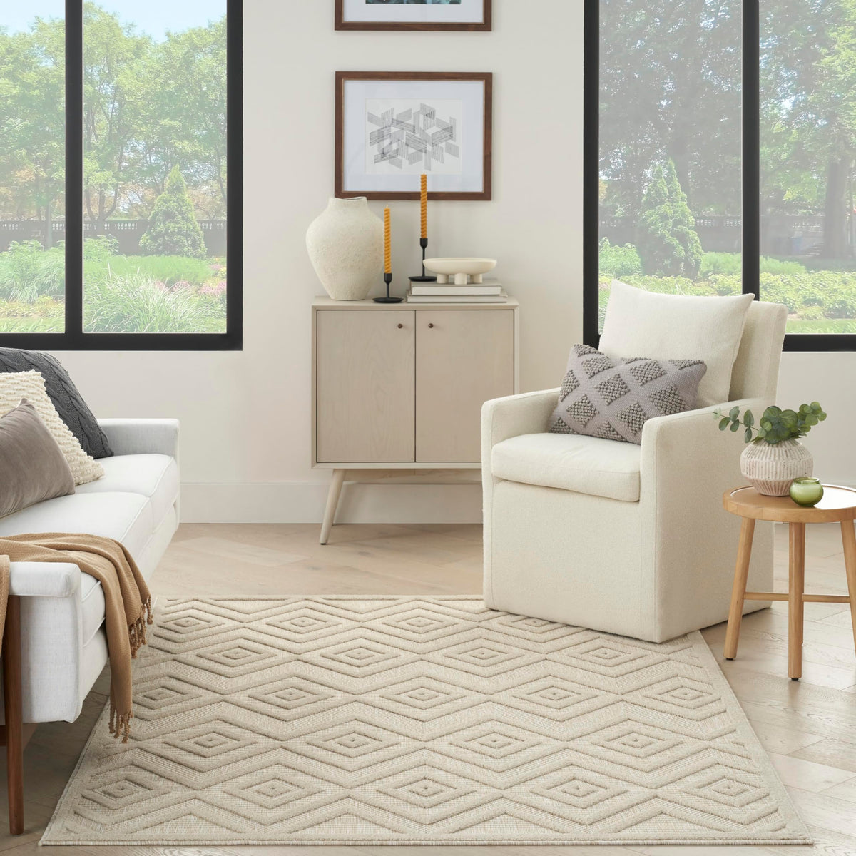 Nourison Versatile Indoor/Outdoor Cream 5' X 7' Area Rug, Easy Cleaning, Non Shedding, Bed Room, Living Room, Dining Room, Backyard, Deck, Patio (5X7)