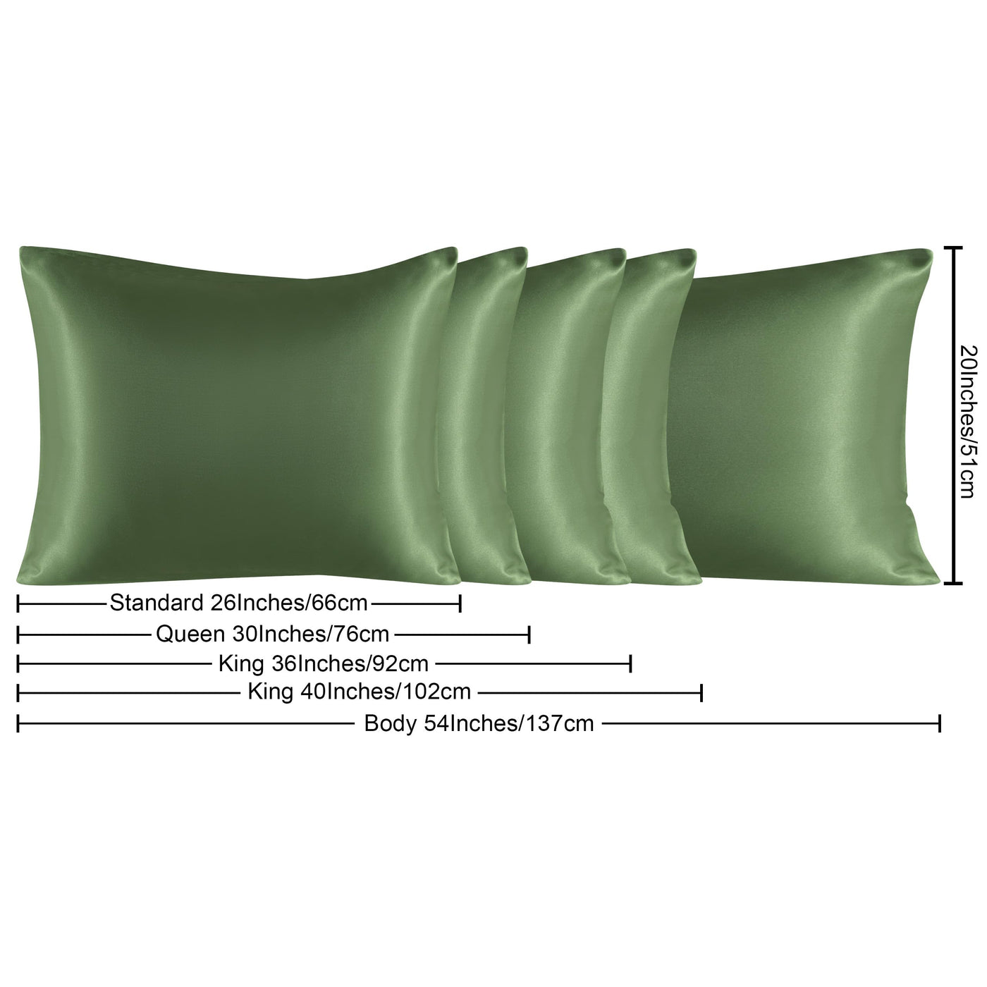 Ntbay 2 Pack Satin King Pillowcases For Hair And Skin, Luxurious And Silky Pillow Cases With Envelope Closure, 20X40 Inches, Olive Green