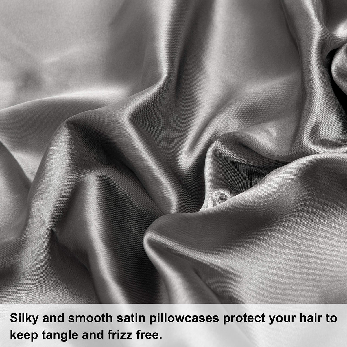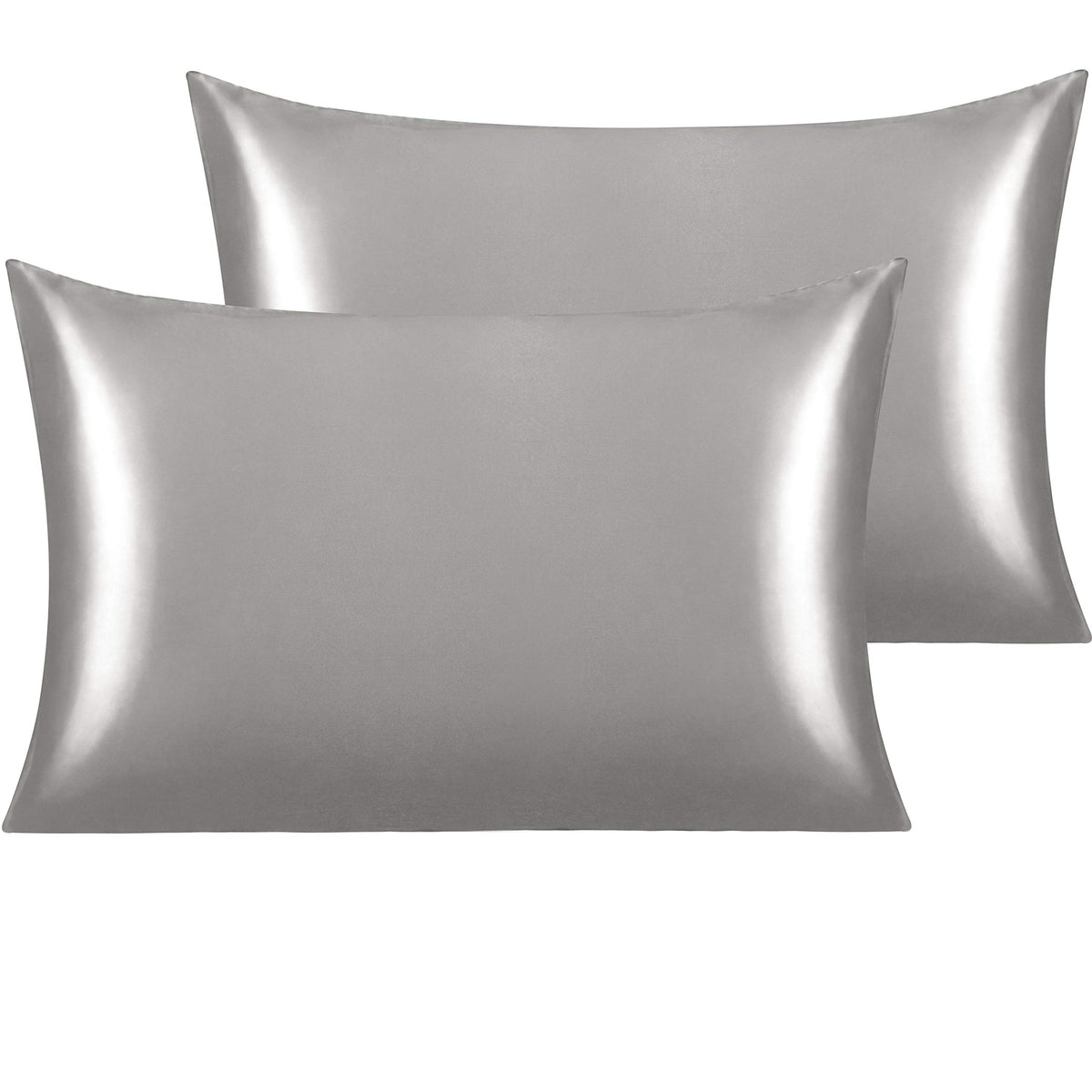 Ntbay 2 Pack Satin Standard Pillowcases For Hair And Skin, Luxurious And Silky Pillow Cases With Envelope Closure, 20X26 Inches, Grey