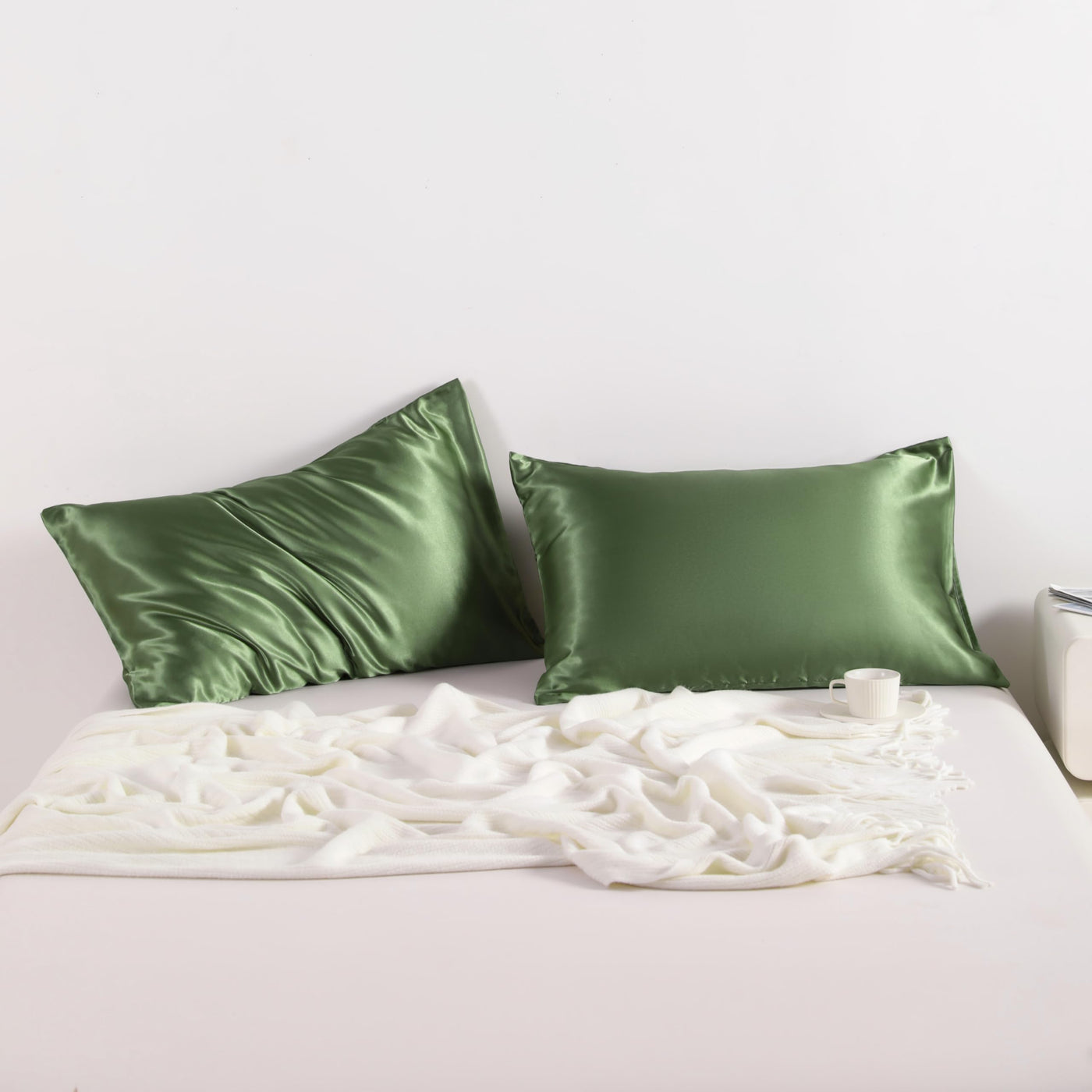 Ntbay 2 Pack Satin Standard Pillowcases For Hair And Skin, Luxurious And Silky Pillow Cases With Envelope Closure, 20X26 Inches, Olive Green