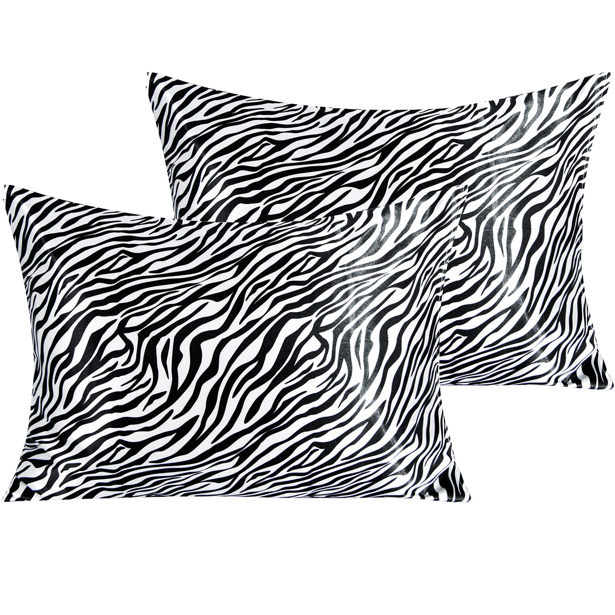 Ntbay 2 Pack Satin Standard Pillowcases For Hair And Skin, Luxurious And Silky Zebra Printed Pillow Cases With Envelope Closure, 20X26 Inches, Black And White