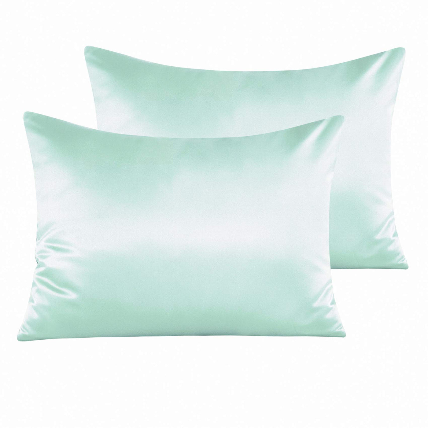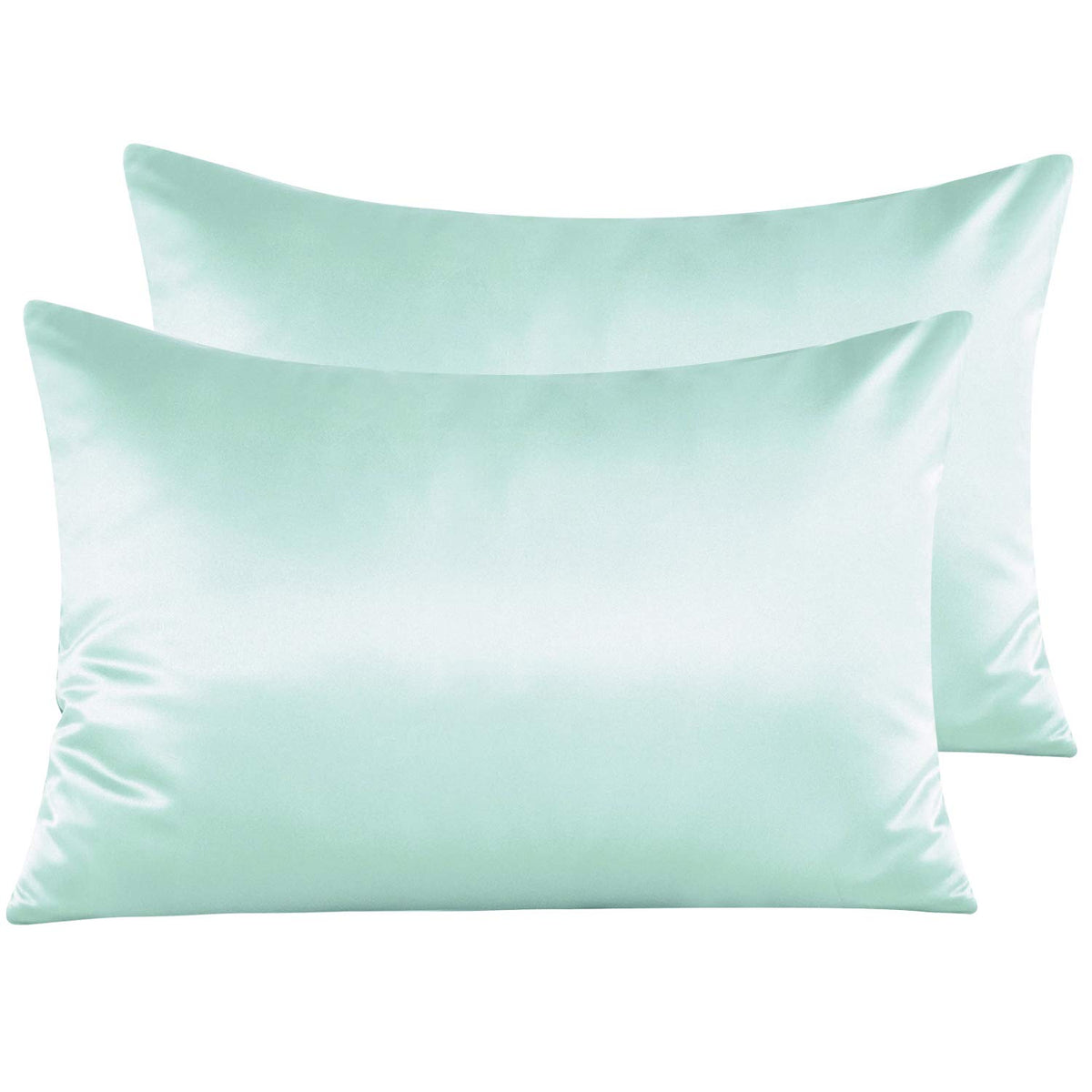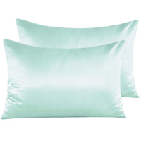 Ntbay Zippered Satin Pillow Cases For Hair And Skin, Luxury Queen Hidden Zipper Pillowcases Set Of 2, 20X30 Inches, Cyan