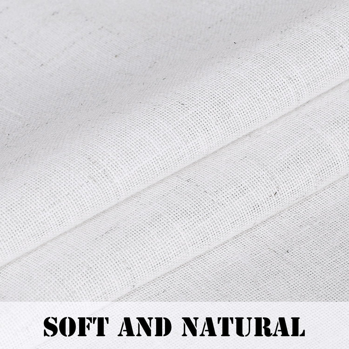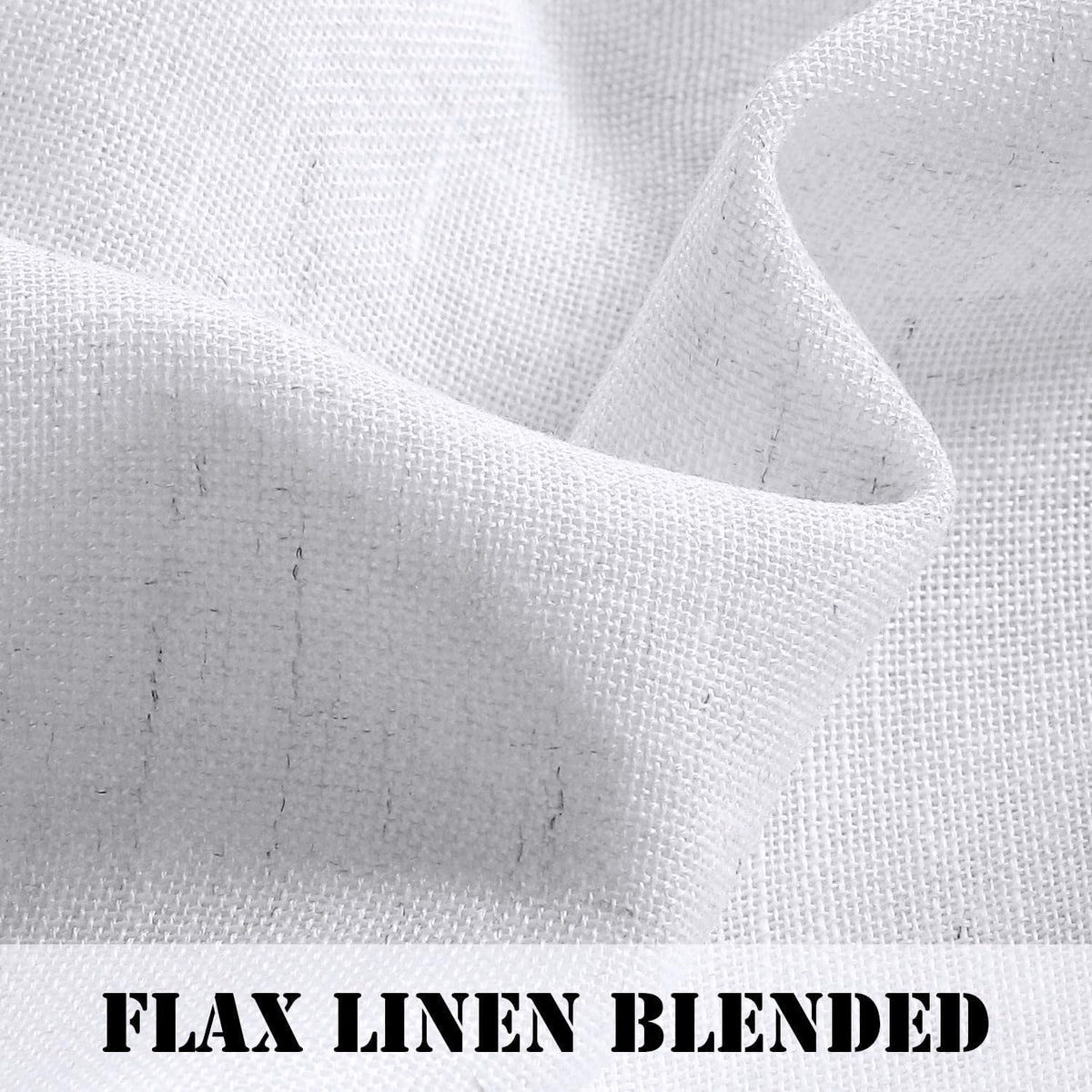 Q: What type of material are these curtains made from?A: The curtains are made from a durable faux linen blended fabric, which gives them a luxurious texture while being wrinkle-free and easy to maintain.