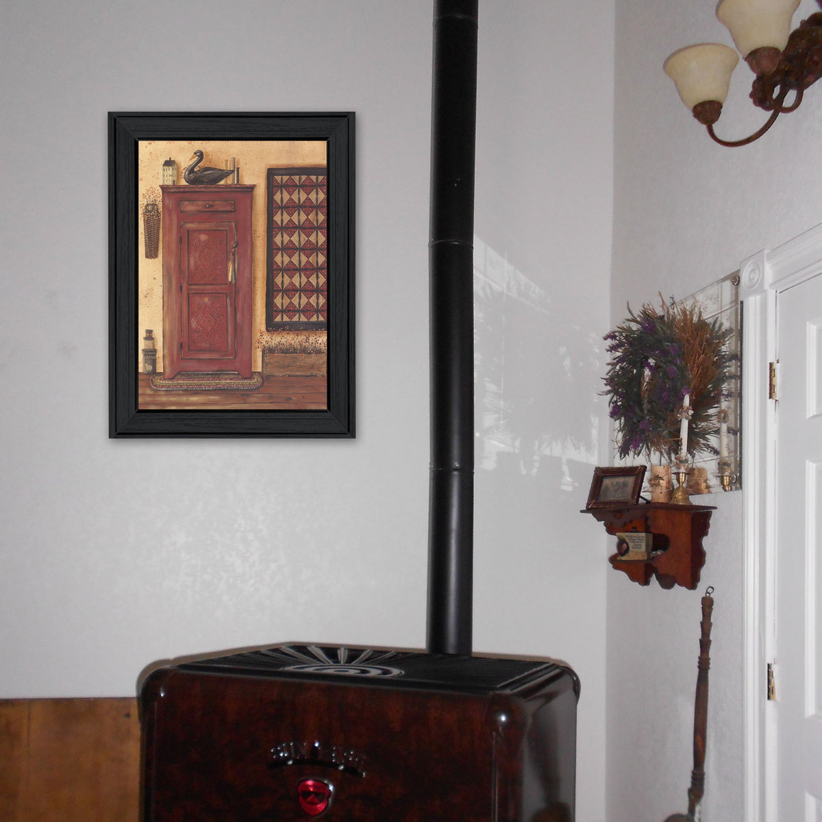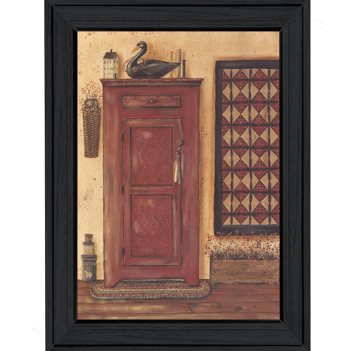 Add an air of fashion to your room and rejuvenate the space with this old red pie safe black framed print wall art. This print is a visual artistic expression that allows you to decorate your space in style. Reproduced for you on paper, this hanging decorative accent will be a trendy and fashionable way to dress your walls. Hang on your wall to add some up to date fashion and decoration. Instliven up your space with this art that brings color dimension to your size. 21' H x 15' W x 1' D
