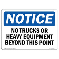 Osha Notice Sign - No Trucks Or Heavy Equipment Beyond This Point | Aluminum Sign | Protect Your Business, Work Site, Warehouse
