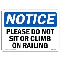 Osha Notice Sign - Please Do Not Sit Or Climb On Railing | Aluminum Sign | Protect Your Business, Construction Site, Warehouse &