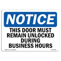 Osha Notice Sign - This Door Must Remain Unlocked During Business | Vinyl Label Decal | Protect Your Business, Construction Site