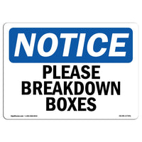 Osha Notice Signs - Please Breakdown Boxes Sign | Extremely Durable Made In The Usa Signs Or Heavy Duty Vinyl Label Decal | Prot