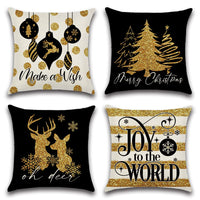 Otostar Gold Christmas Pillow Covers 18X18 Set Of 4 For Christmas Decorations Black Golden Elk Christmas Tree Christmas Pillows