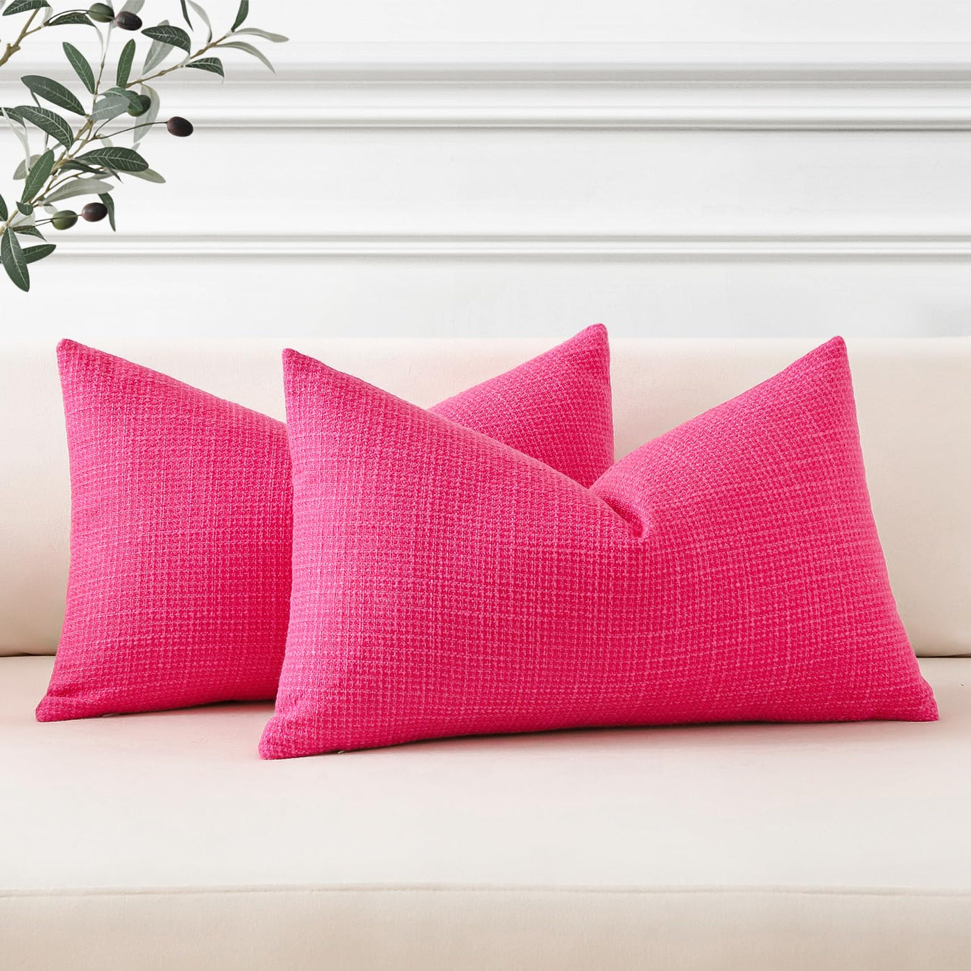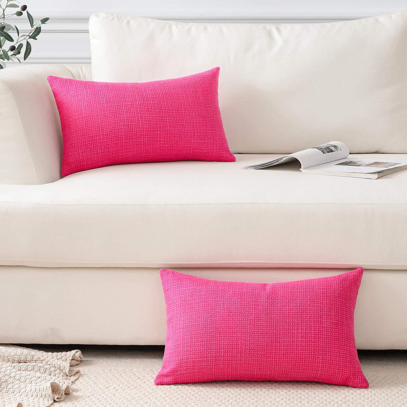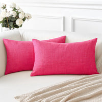 Otostar Linen Throw Pillow Covers Set Of 2 Decorative Lumbar Pillowcases Cushion Covers 16X24 Inch For Home Decor Sofa Bedroom Car 40 X 60 Cm Hot Pink