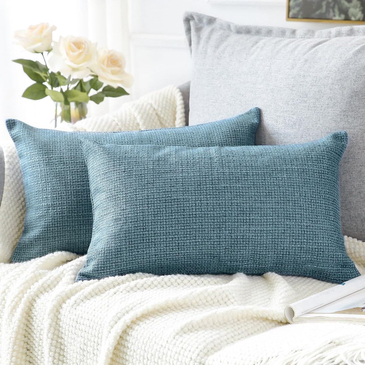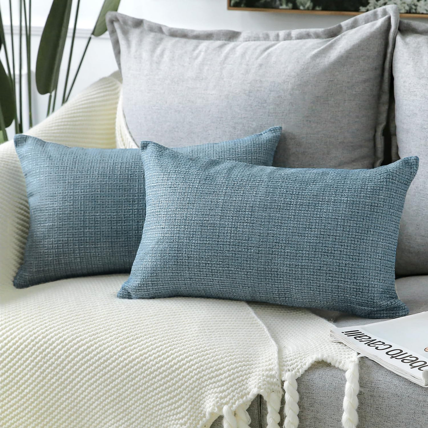 Otostar Linen Throw Pillow Covers Set Of 2 Decorative Square Pillowcases Cushion Covers 12X20 Inch For Home Decor Sofa Bedroom Car 30 X 50Cm Blue