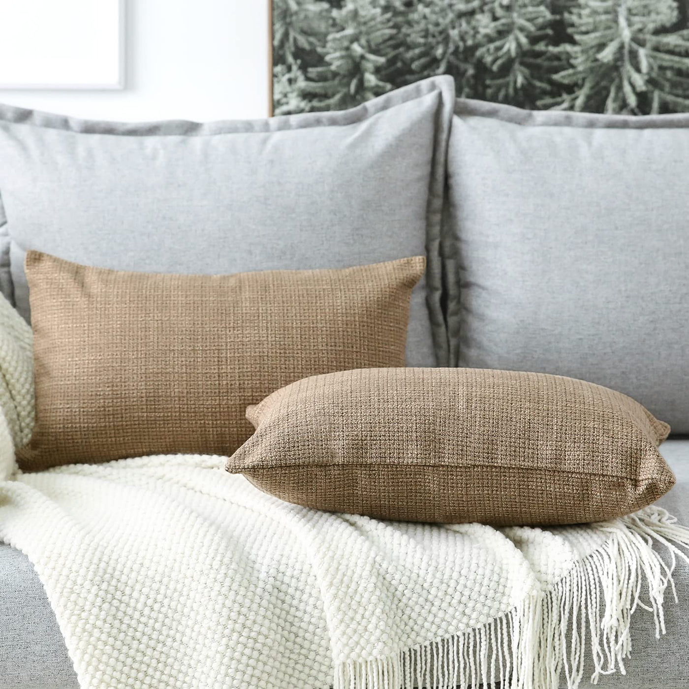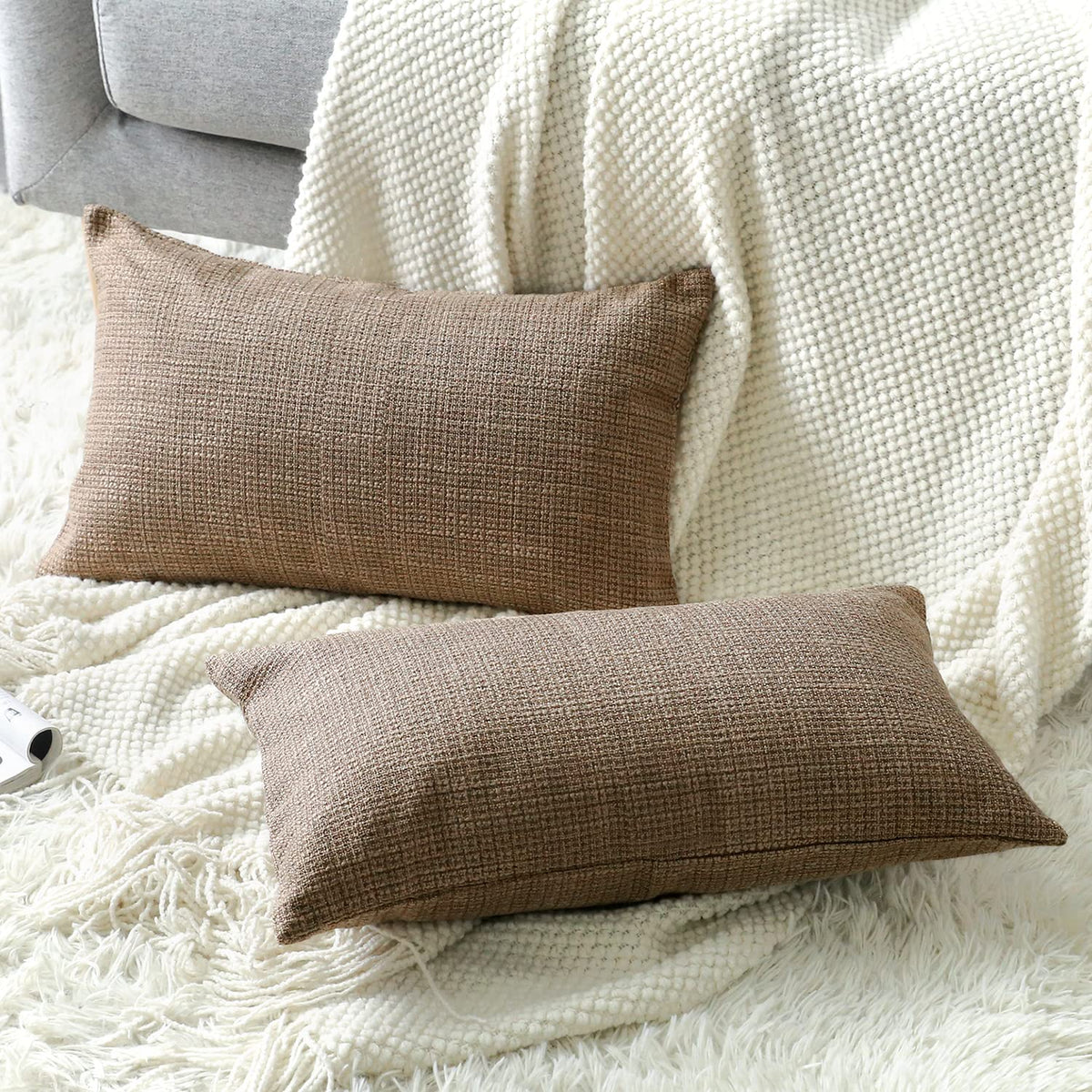 Otostar Linen Throw Pillow Covers Set Of 2 Decorative Square Pillowcases Cushion Covers 12X20 Inch For Home Decor Sofa Bedroom Car 30 X 50Cm Coffee Brown