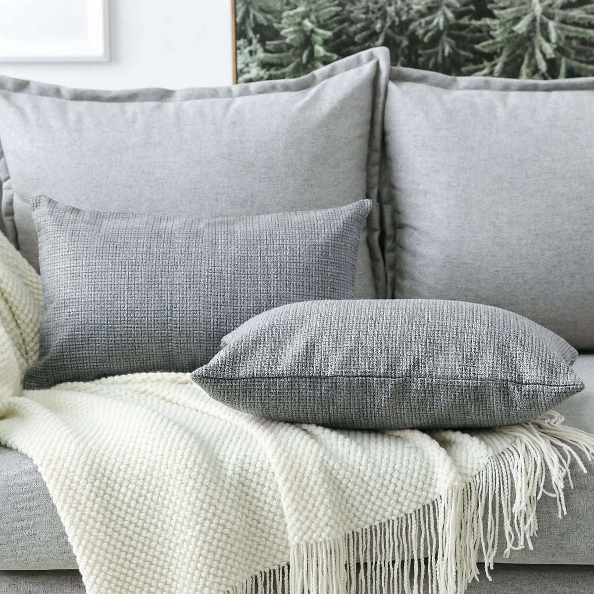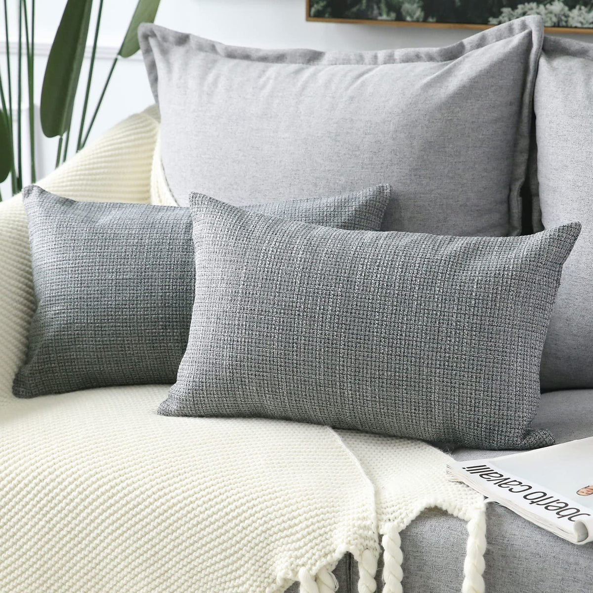 Otostar Linen Throw Pillow Covers Set Of 2 Decorative Square Pillowcases Cushion Covers 12X20 Inch For Home Decor Sofa Bedroom Car 30 X 50Cm Dark Grey