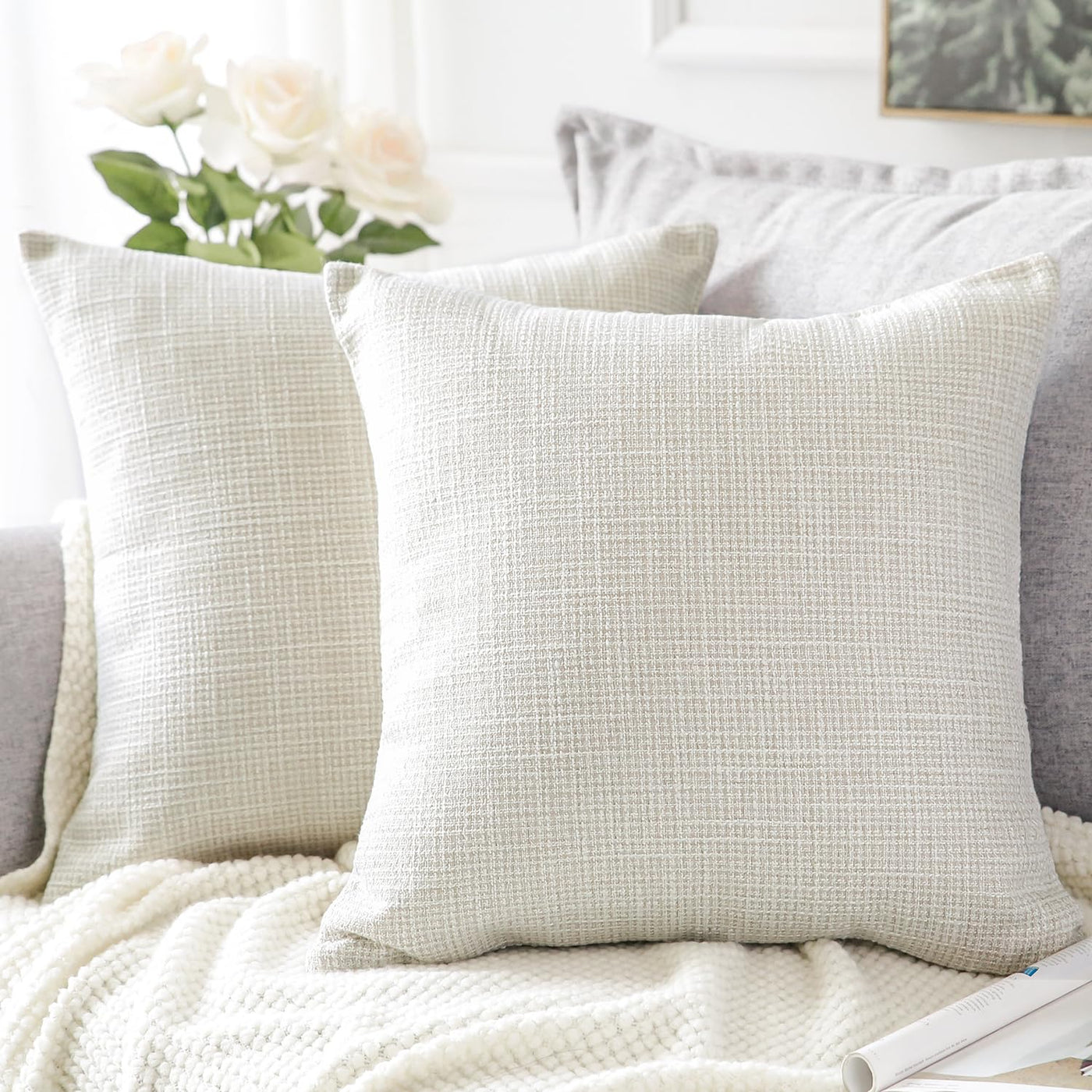 Otostar Linen Throw Pillow Covers Set Of 2 Decorative Square Pillowcases Cushion Covers 14X14 Inch For Home Decor Sofa Bedroom Car 35 X 35 Cm Beige