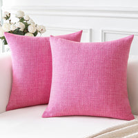 Otostar Linen Throw Pillow Covers Set Of 2 Decorative Square Pillowcases Cushion Covers 16X16 Inch For Home Decor Sofa Bedroom Car 40 X 40 Cm Rose Pink