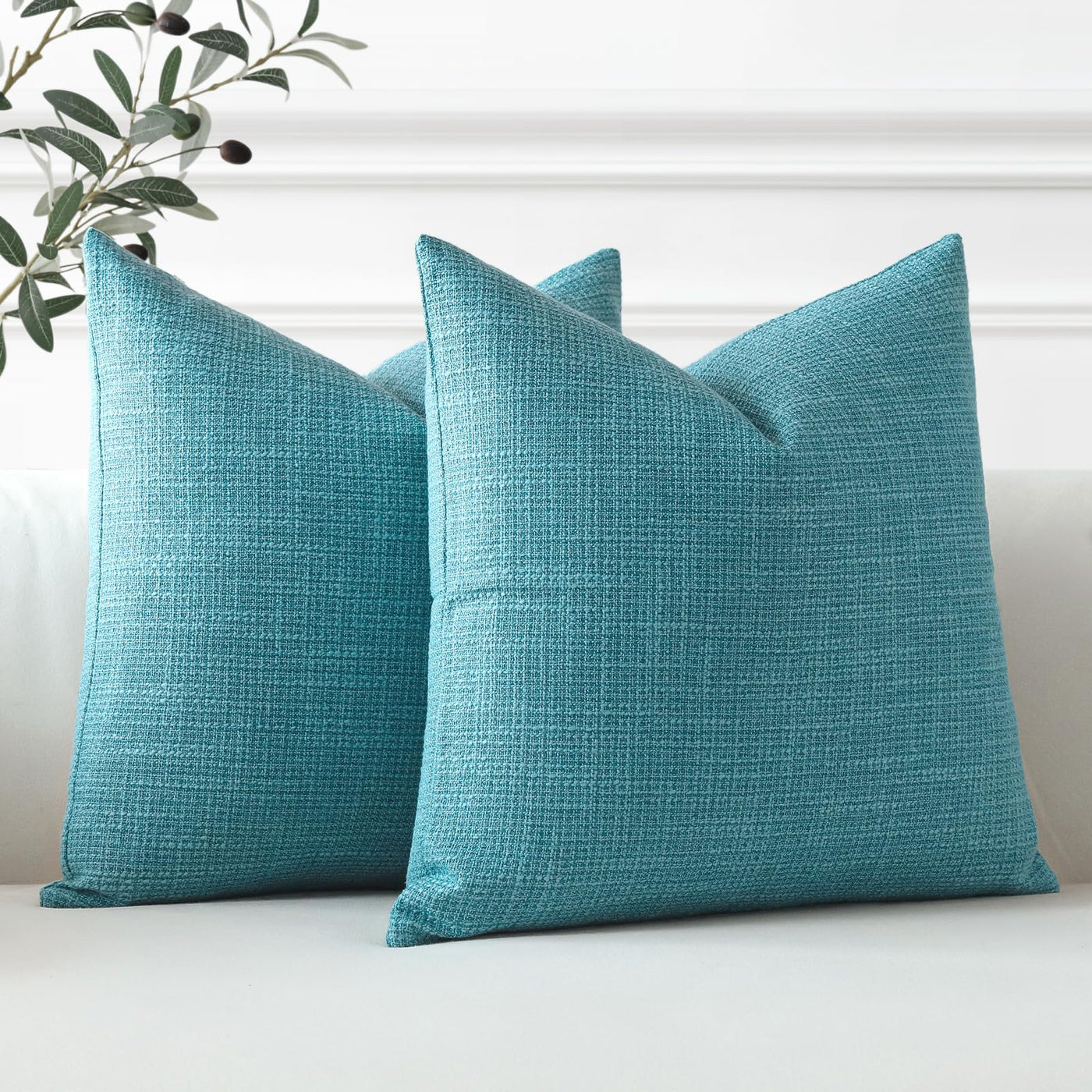 Otostar Linen Throw Pillow Covers Set Of 2 Decorative Square Pillowcases Cushion Covers 16X16 Inch For Home Decor Sofa Bedroom Car 40 X 40 Cm Turquoise