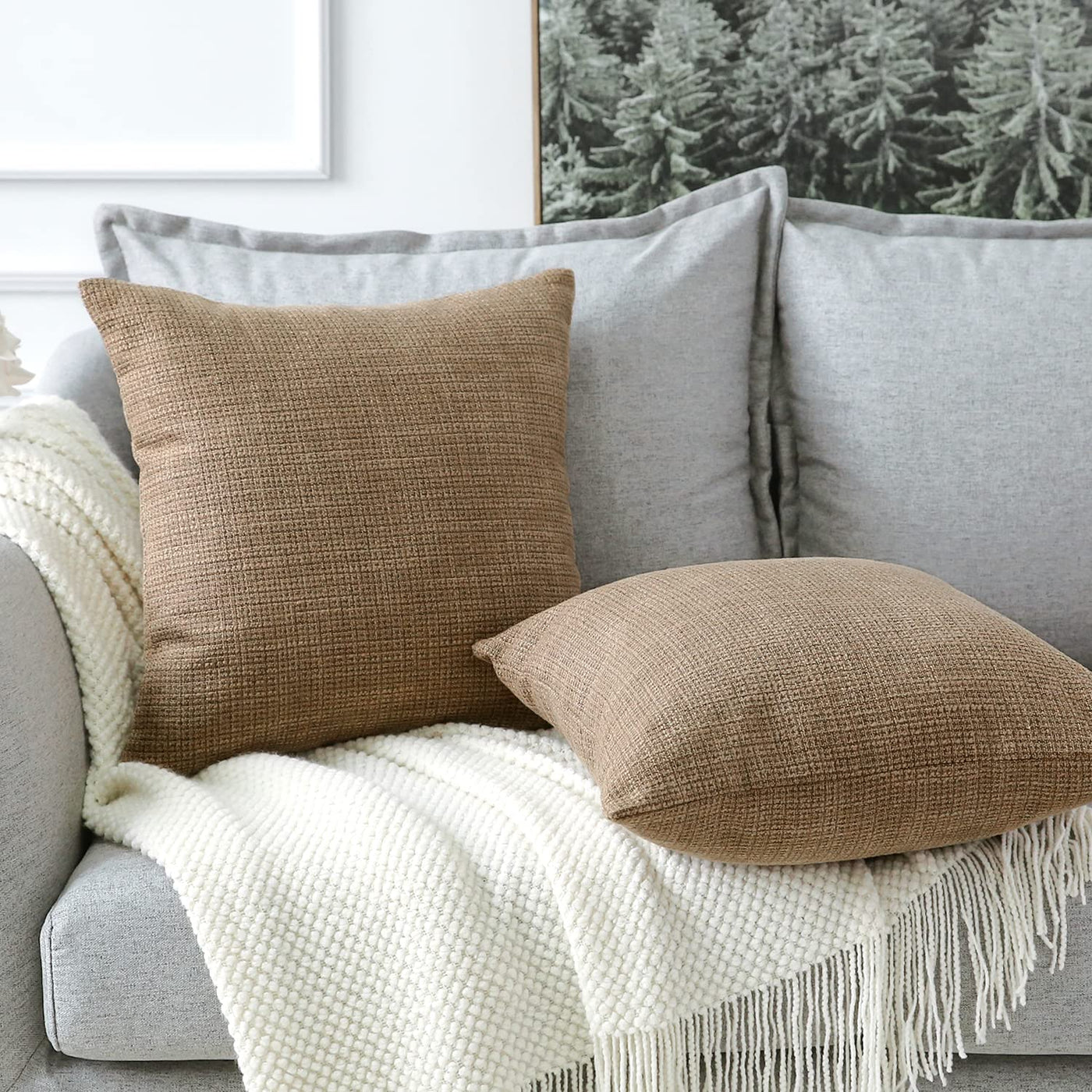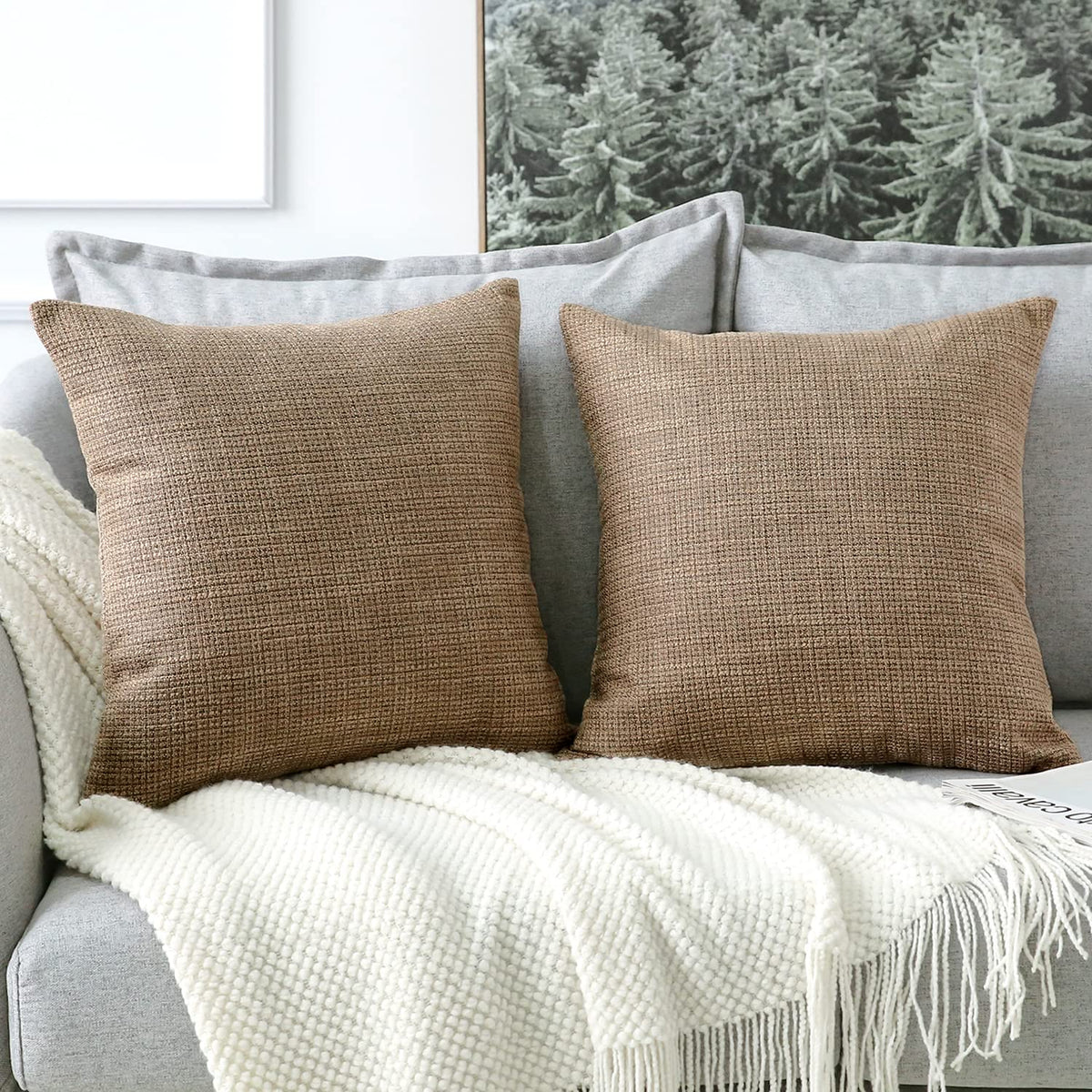 Otostar Linen Throw Pillow Covers Set Of 2 Decorative Square Pillowcases Cushion Covers 16X16 Inch For Home Decor Sofa Bedroom Car 40 X 40Cm Coffee Brown