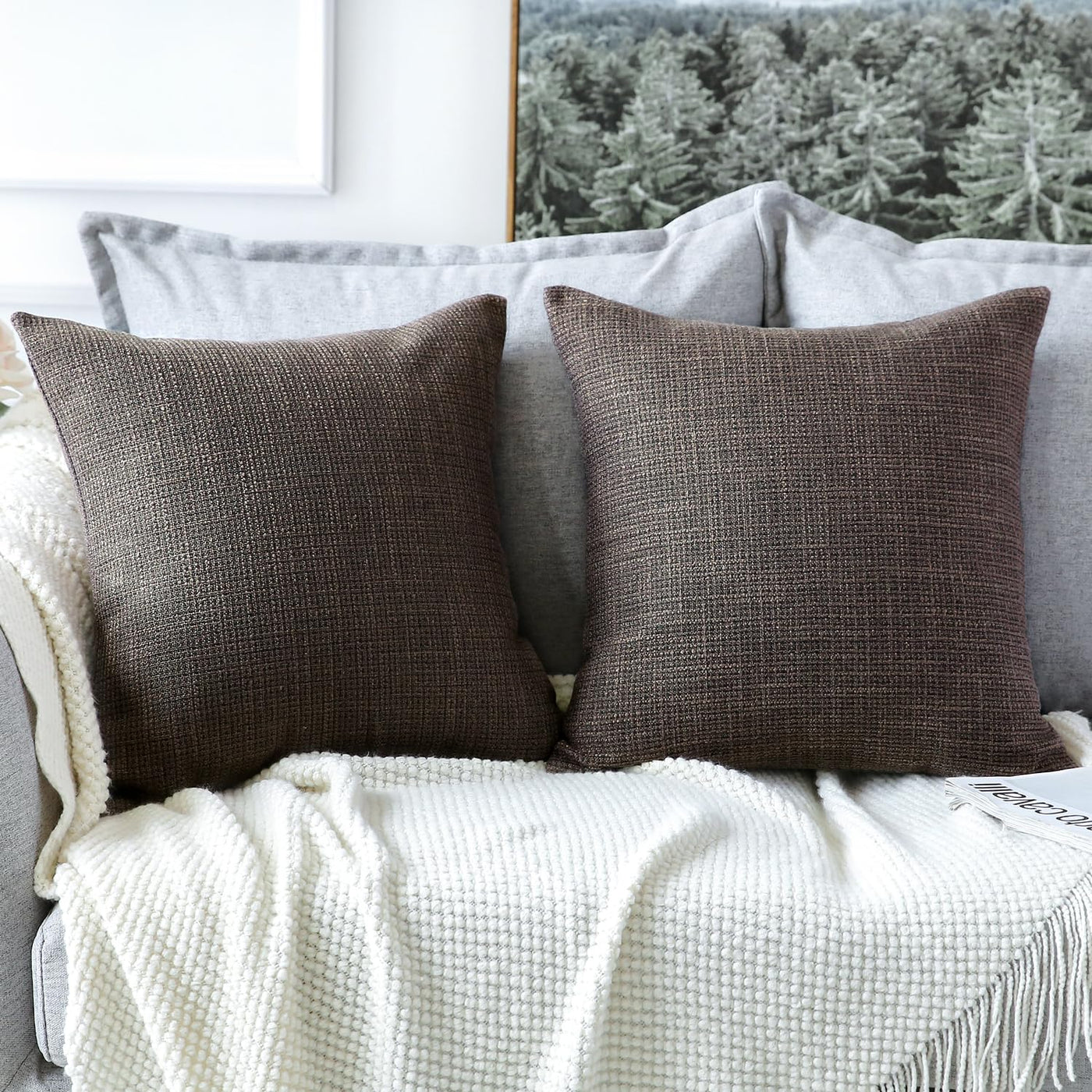 Otostar Linen Throw Pillow Covers Set Of 2 Decorative Square Pillowcases Cushion Covers 16X16 Inch For Home Decor Sofa Bedroom Car 40 X 40Cm Dark Brown