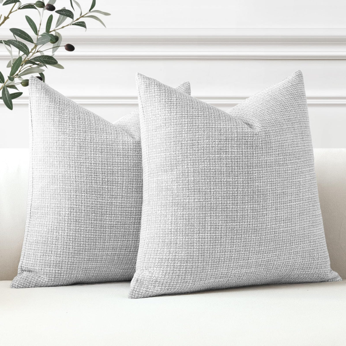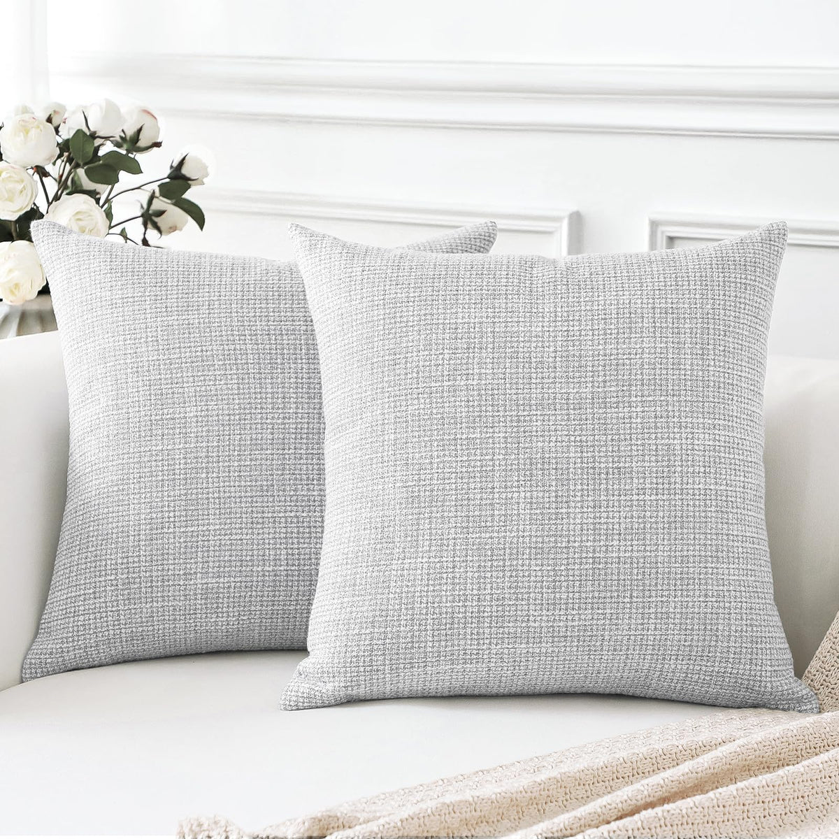 Otostar Linen Throw Pillow Covers Set Of 2 Decorative Square Pillowcases Cushion Covers 16X16 Inch For Home Decor Sofa Bedroom Car 40 X 40Cm Light Grey