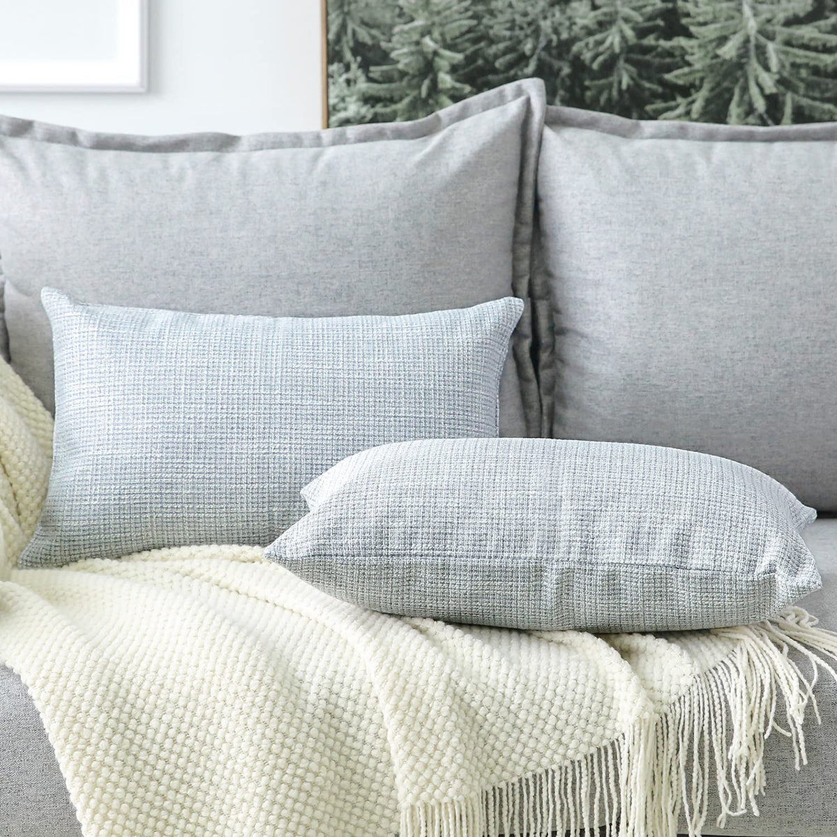 Otostar Linen Throw Pillow Covers Set Of 2 Decorative Square Pillowcases Cushion Covers 16X24 Inch For Home Decor Sofa Bedroom Car 40 X 60 Cm Blue Grey