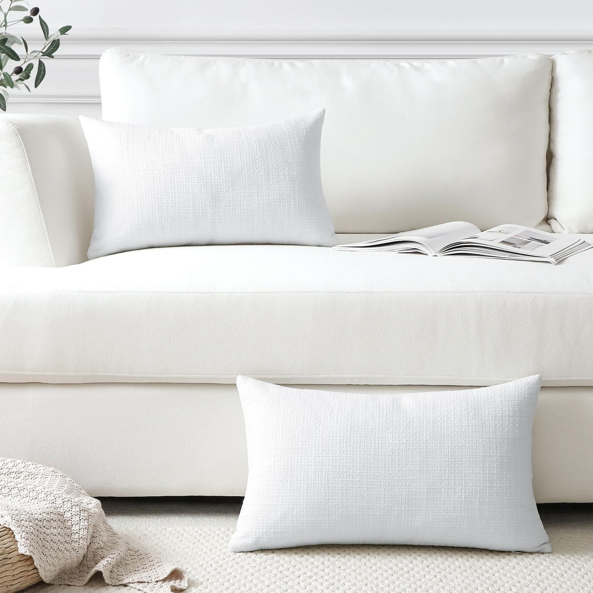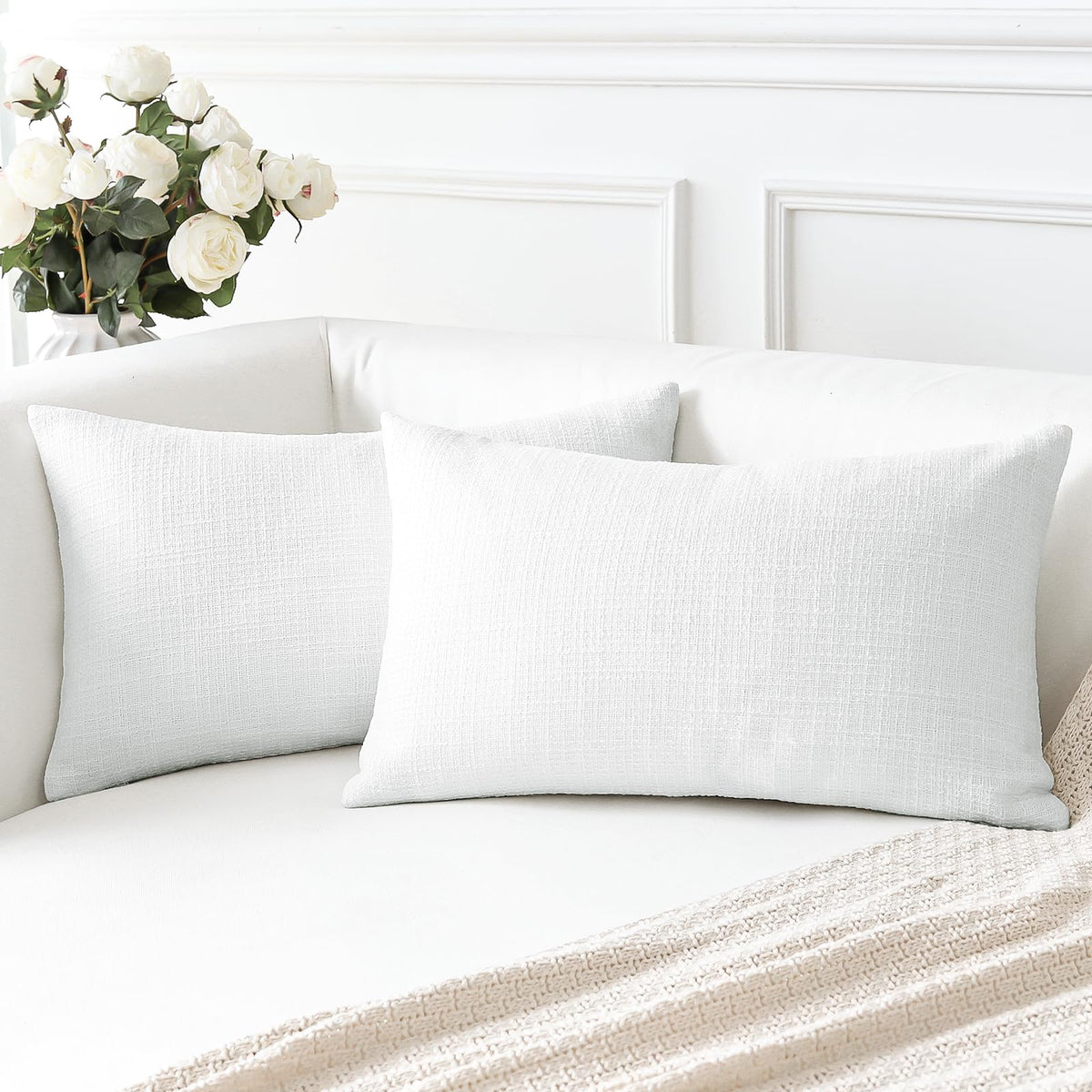 Otostar Linen Throw Pillow Covers Set Of 2 Decorative Square Pillowcases Cushion Covers 16X24 Inch For Home Decor Sofa Bedroom Car 40 X 60 Cm Pure White