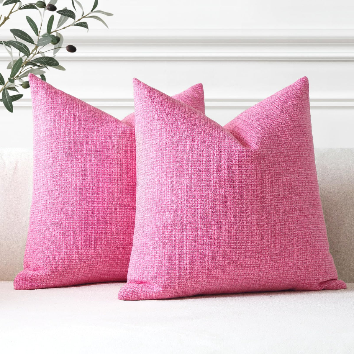 Otostar Linen Throw Pillow Covers Set Of 2 Decorative Square Pillowcases Cushion Covers 24X24 Inch For Home Decor Sofa Bedroom Car 60 X 60 Cm Rose Pink