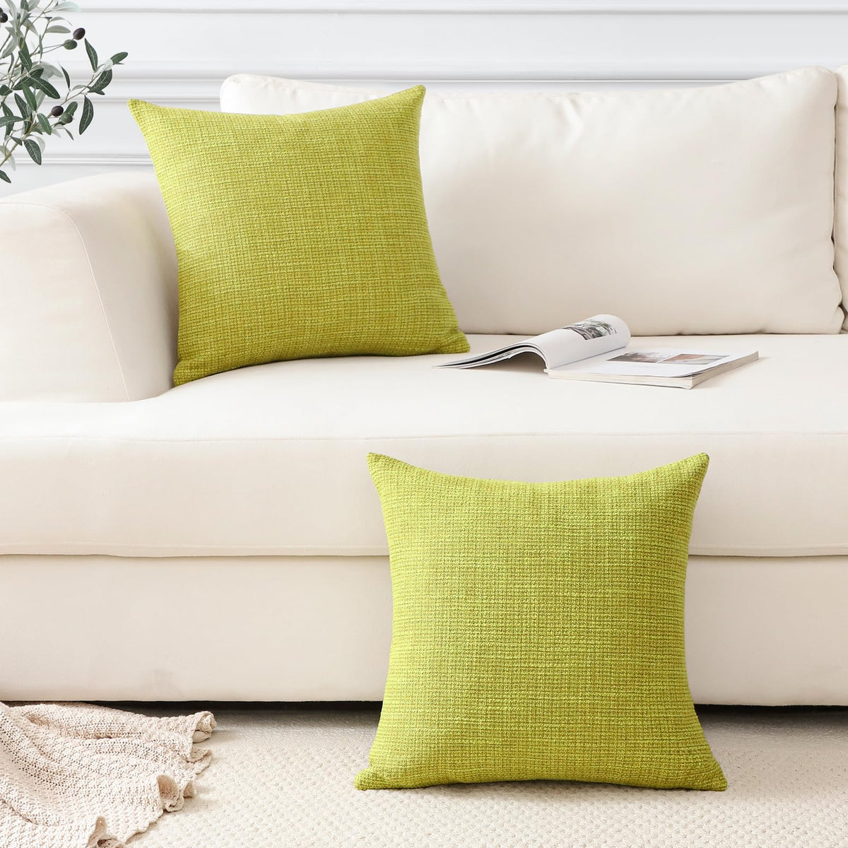 Otostar Linen Throw Pillow Covers Set Of 2 Decorative Square Pillowcases Cushion Covers 24X24 Inch For Home Decor Sofa Bedroom Car 60 X 60 Cm Sage Green