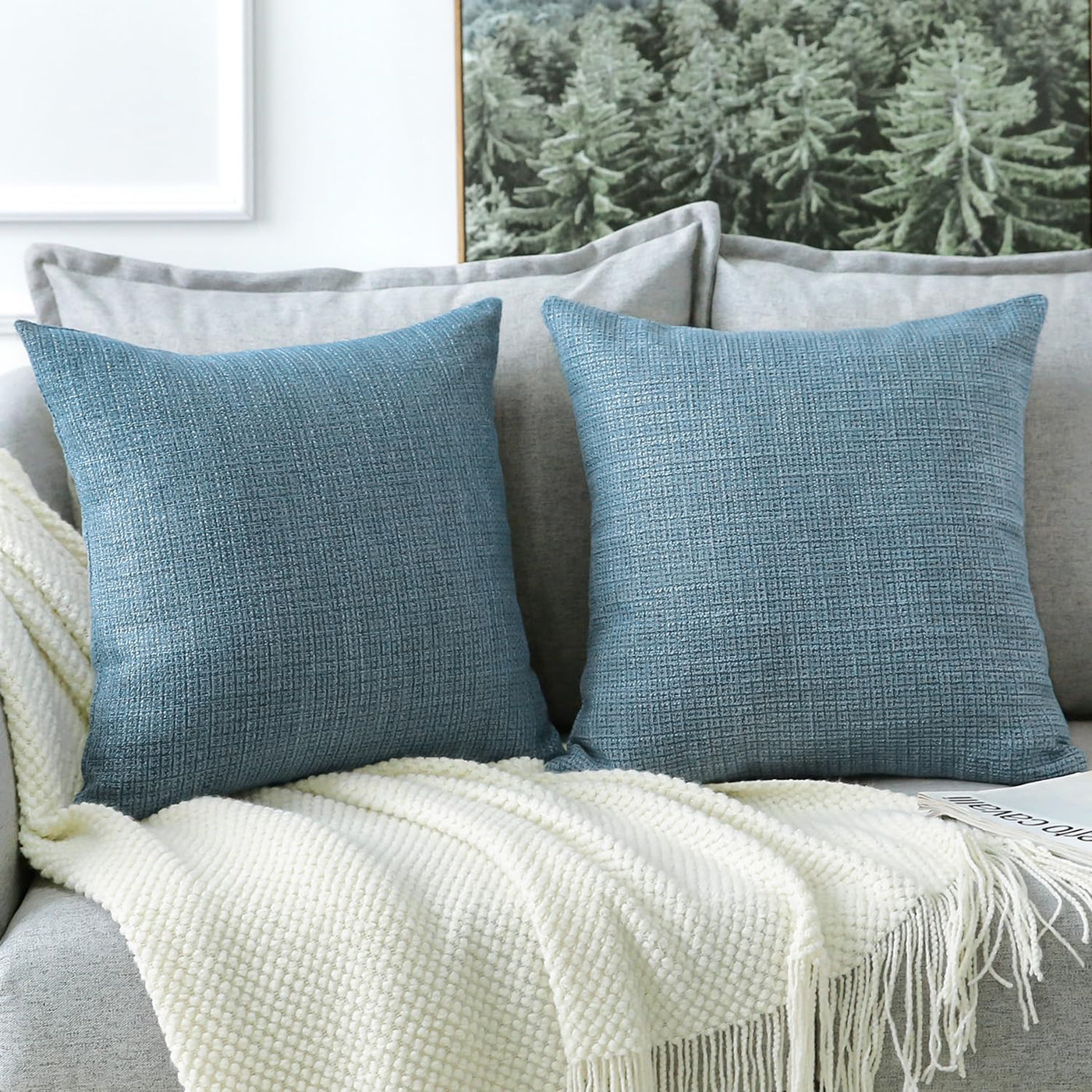 Otostar Linen Throw Pillow Covers Set Of 2 Decorative Square Pillowcases Cushion Covers 26X26 Inch For Home Decor Sofa Bedroom Car 65 X 65 Cm Blue