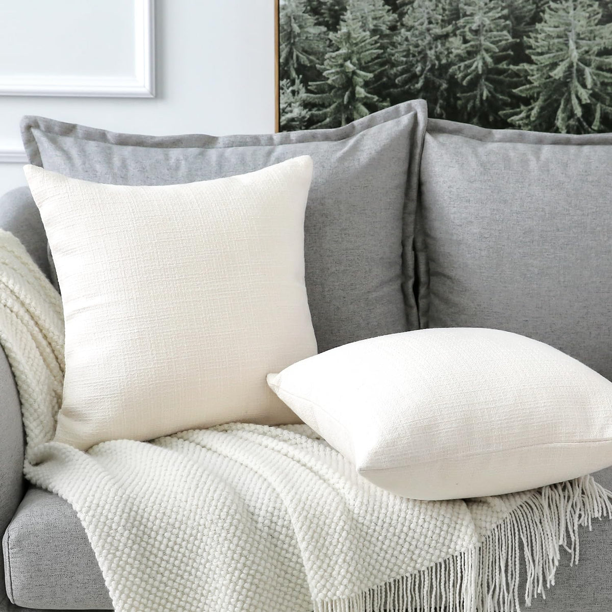 Otostar Linen Throw Pillow Covers Set Of 2 Decorative Square Pillowcases Cushion Covers 26X26 Inch For Home Decor Sofa Bedroom Car 65 X 65 Cm Cream White/Beige