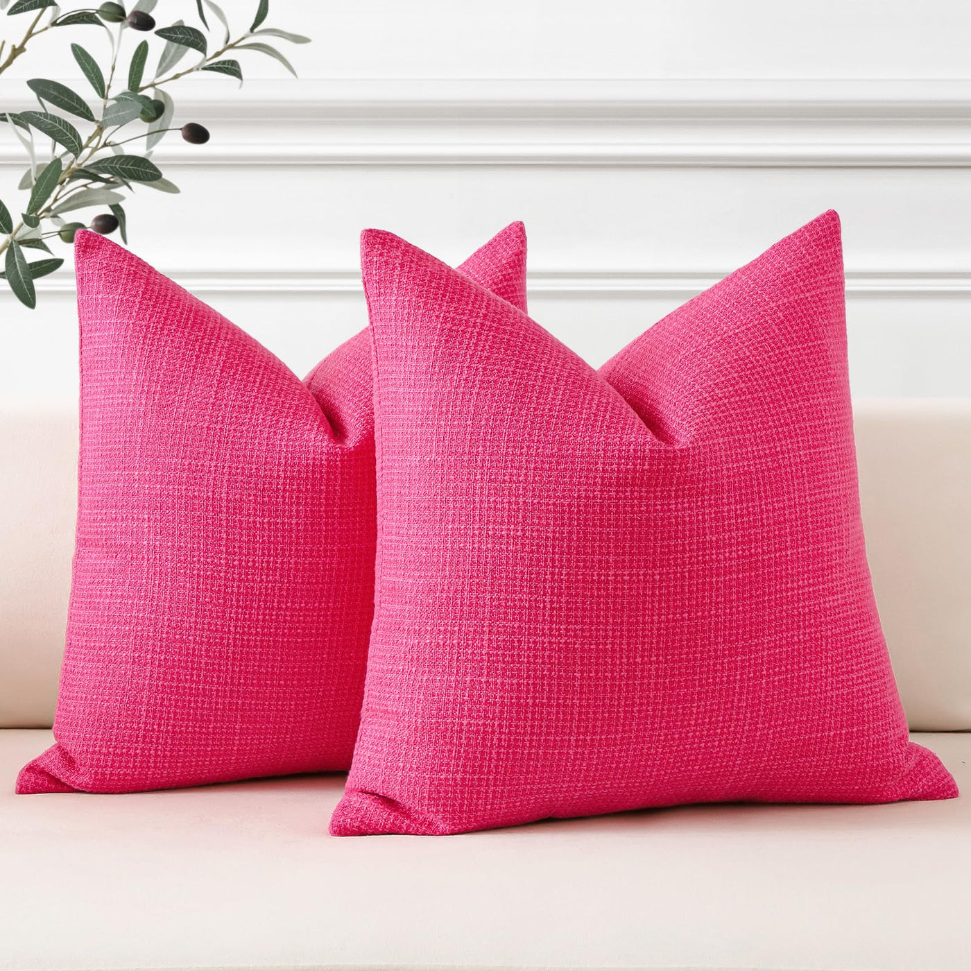Otostar Linen Throw Pillow Covers Set Of 2 Decorative Square Pillowcases Cushion Covers 26X26 Inch For Home Decor Sofa Bedroom Car 65 X 65 Cm Hot Pink