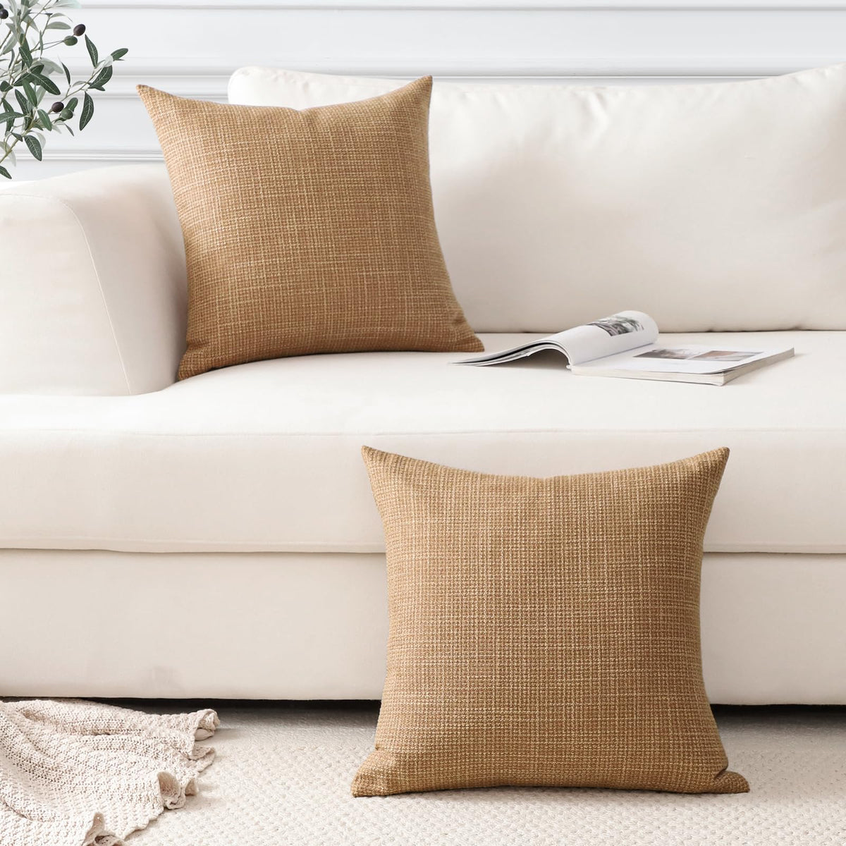 Otostar Linen Throw Pillow Covers Set Of 2 Decorative Square Pillowcases Cushion Covers 26X26 Inch For Home Decor Sofa Bedroom Car 65 X 65 Cm Light Brown