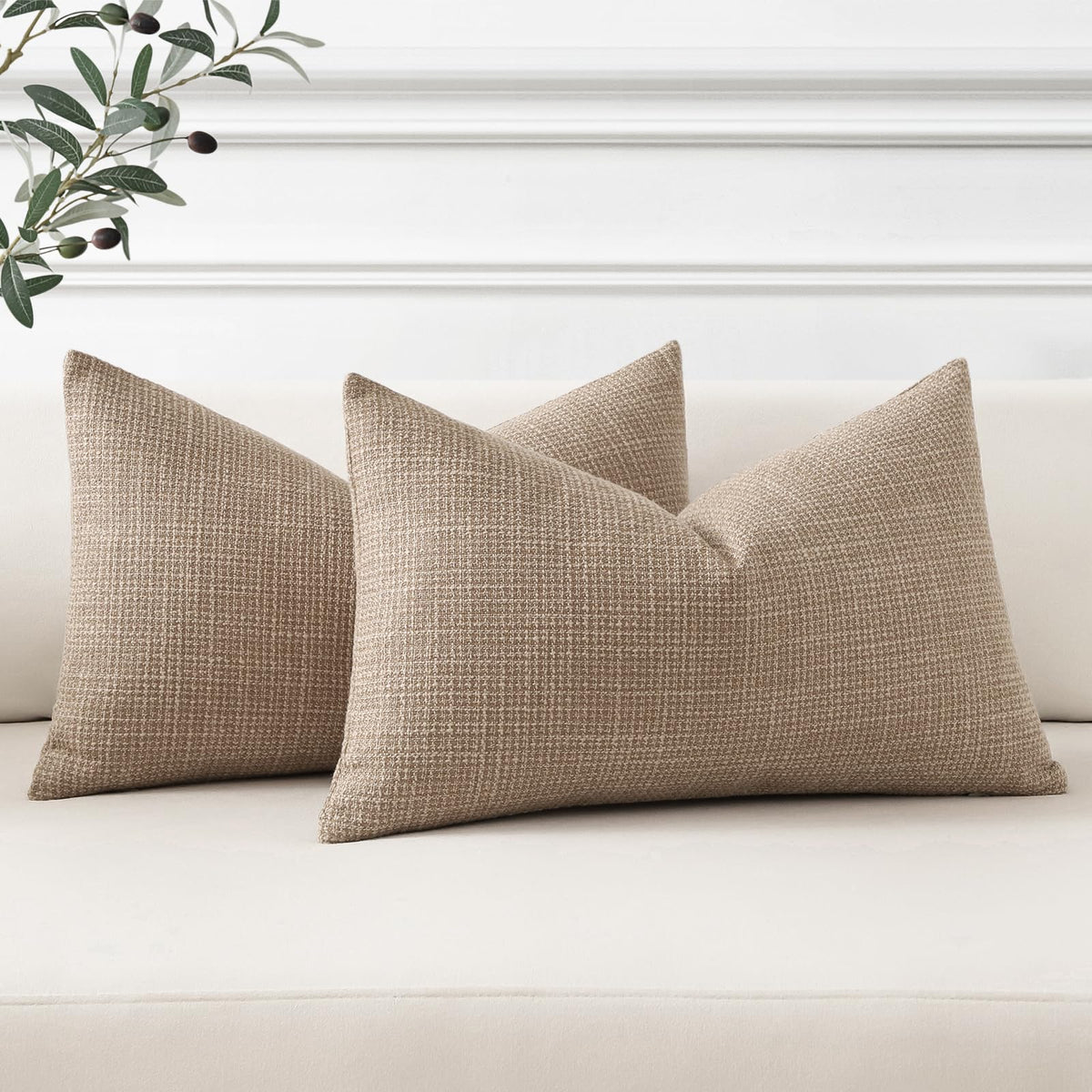 Otostar Linen Throw Pillow Covers Set Of 2 Decorative Square Pillowcases Cushion Covers 26X26 Inch For Home Decor Sofa Bedroom Car 65 X 65 Cm Light Coffee