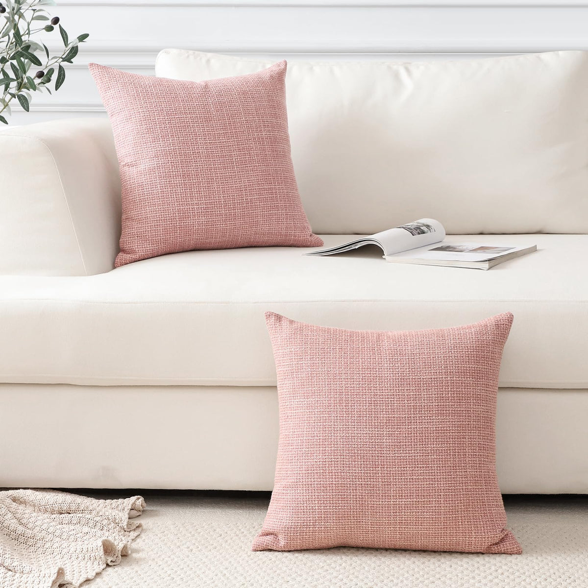 Otostar Linen Throw Pillow Covers Set Of 2 Decorative Square Pillowcases Cushion Covers 26X26 Inch For Home Decor Sofa Bedroom Car 65 X 65 Cm Pink
