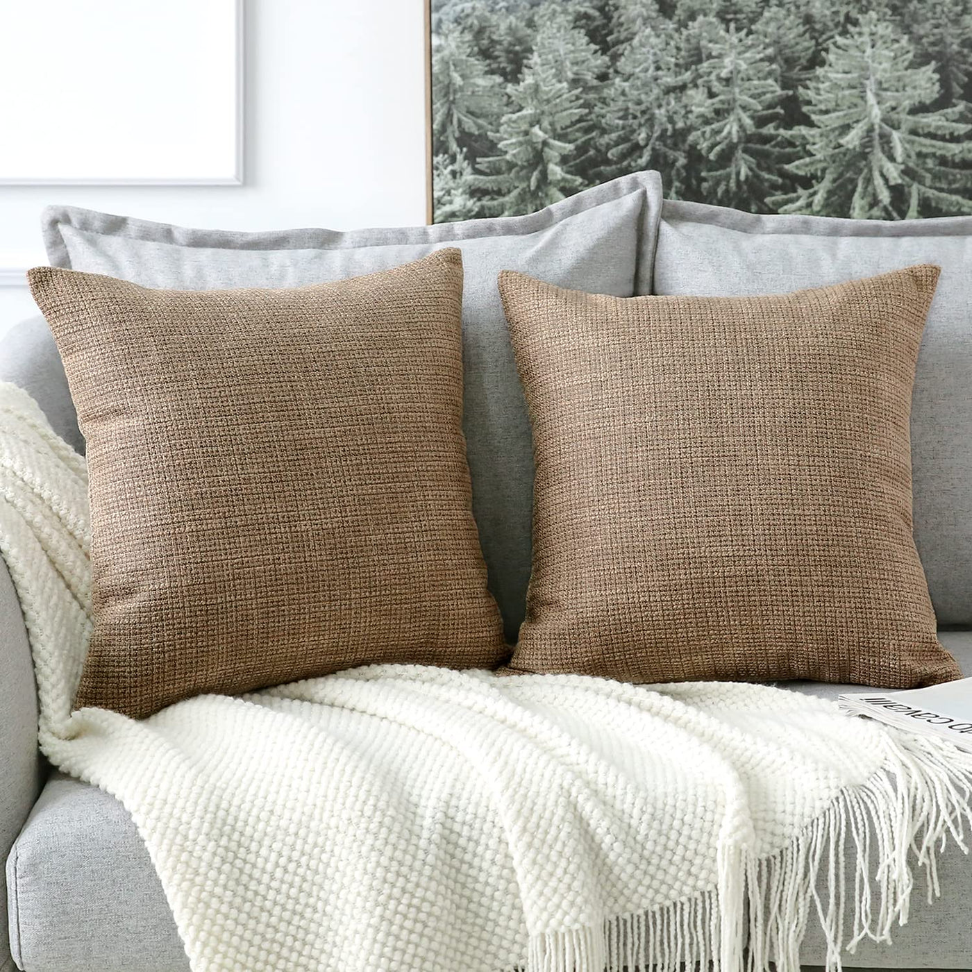 Otostar Linen Throw Pillow Covers Set Of 2 Decorative Square Pillowcases Cushion Covers 28X28 Inch For Home Decor Sofa Bedroom Car 70 X 70 Cm Coffee Brown