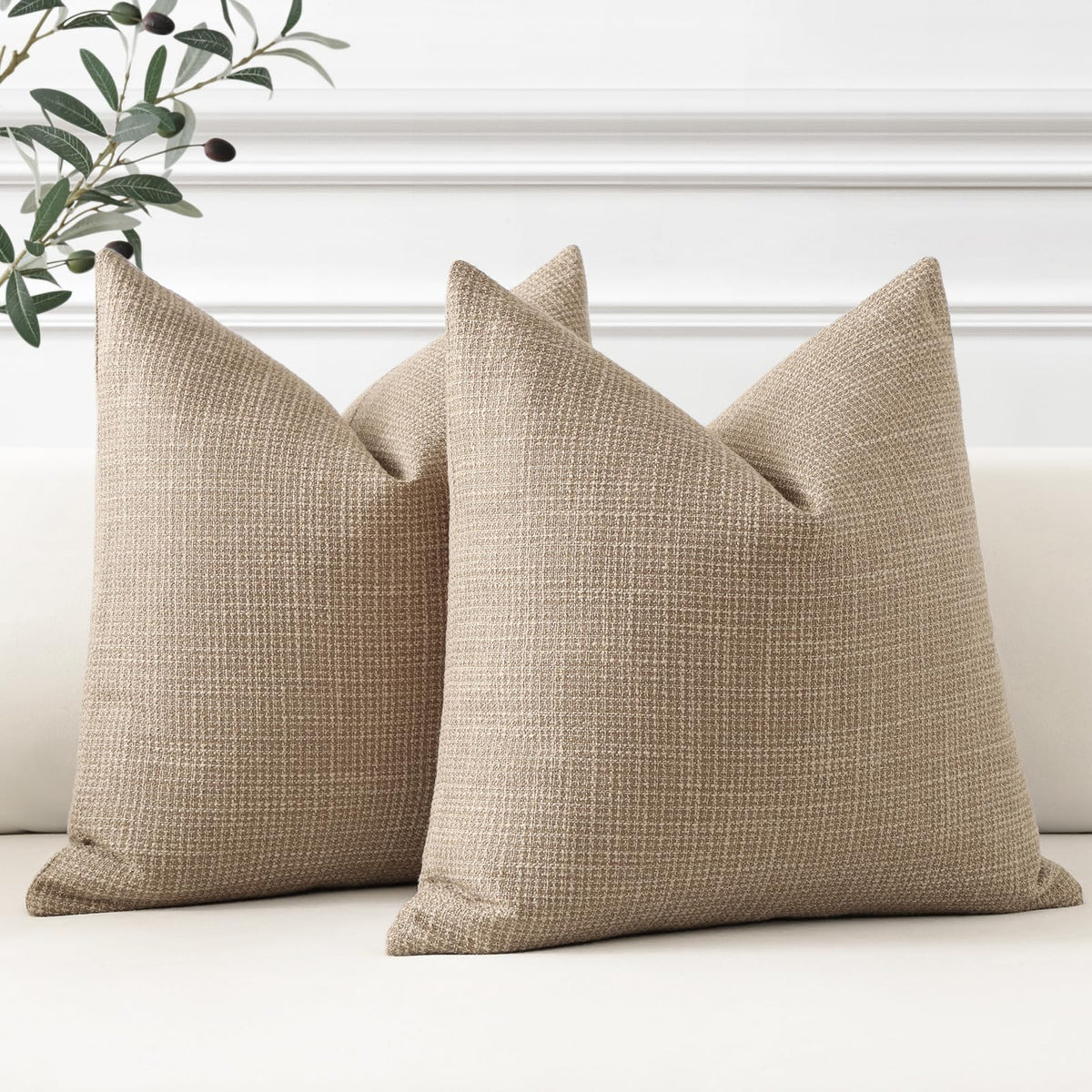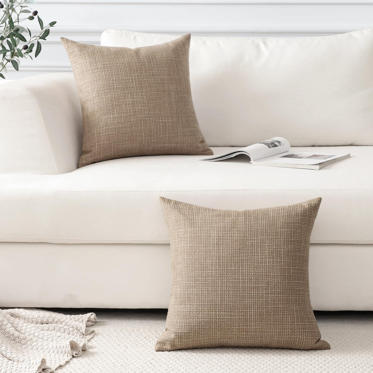 Otostar Linen Throw Pillow Covers Set Of 2 Decorative Square Pillowcases Cushion Covers 28X28 Inch For Home Decor Sofa Bedroom Car 70 X 70 Cm Light Coffee