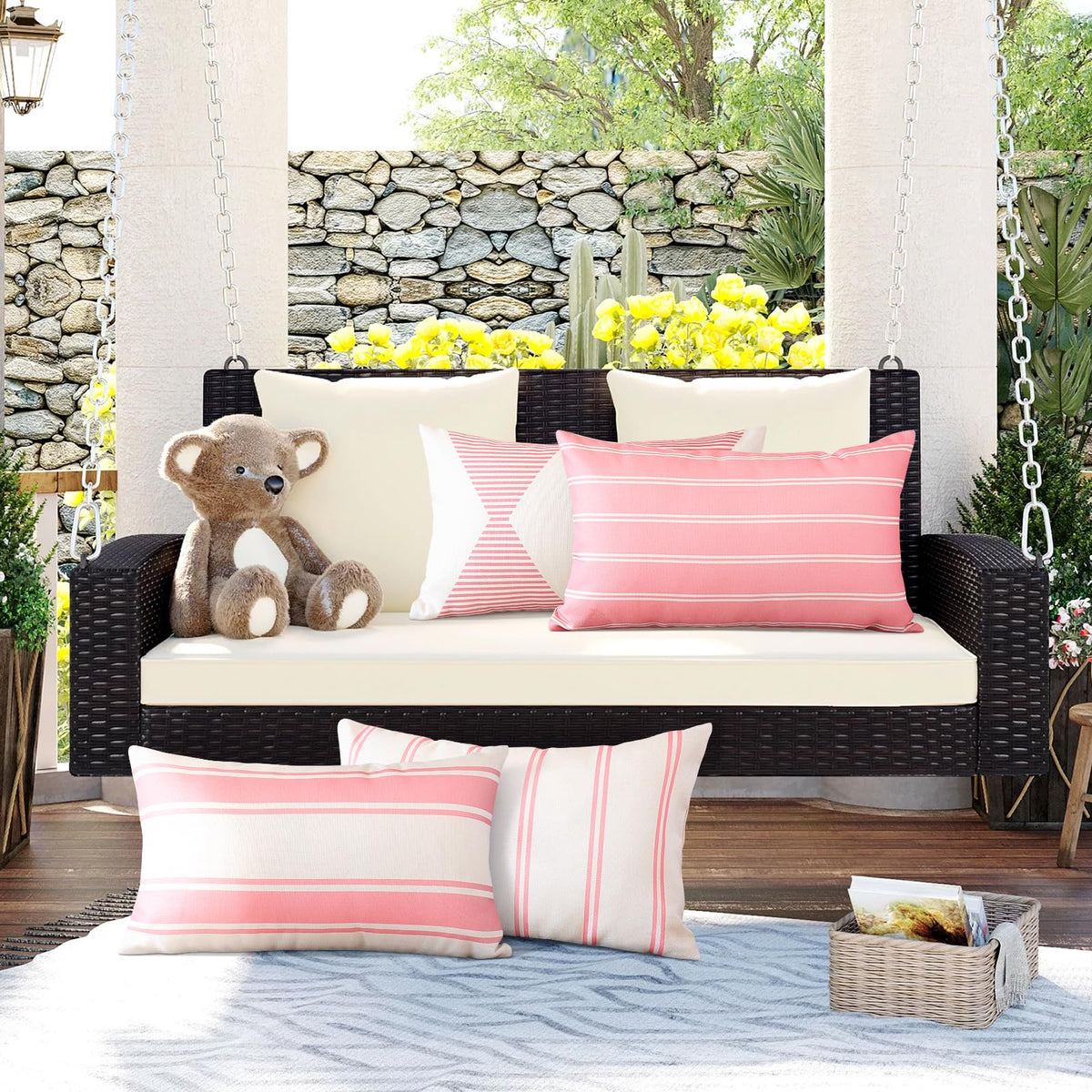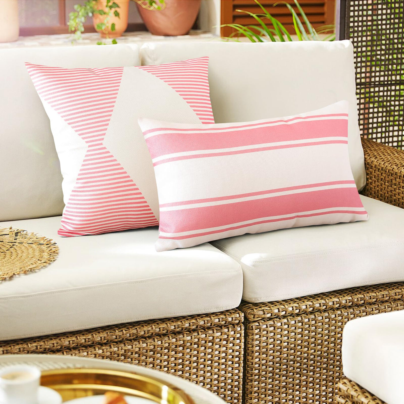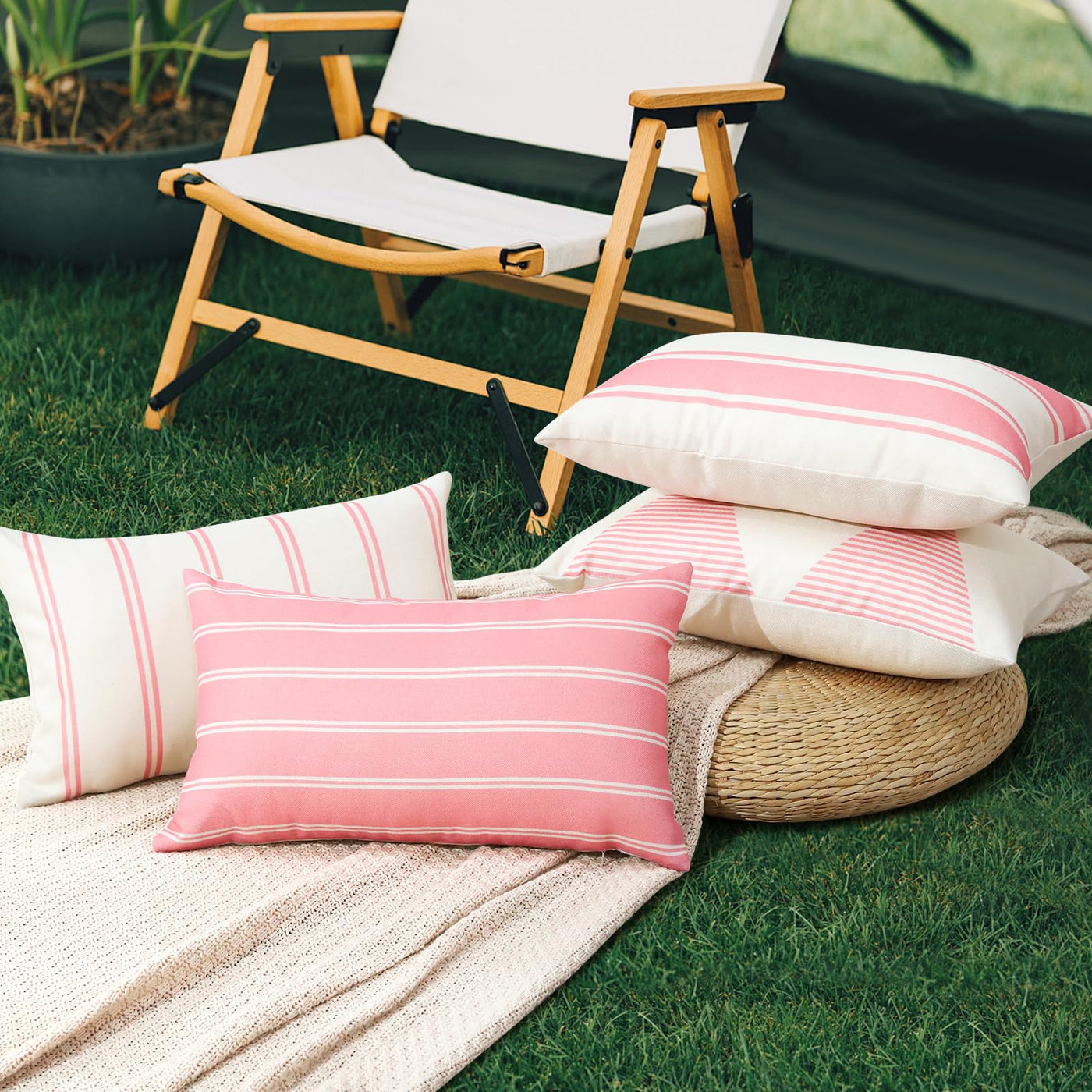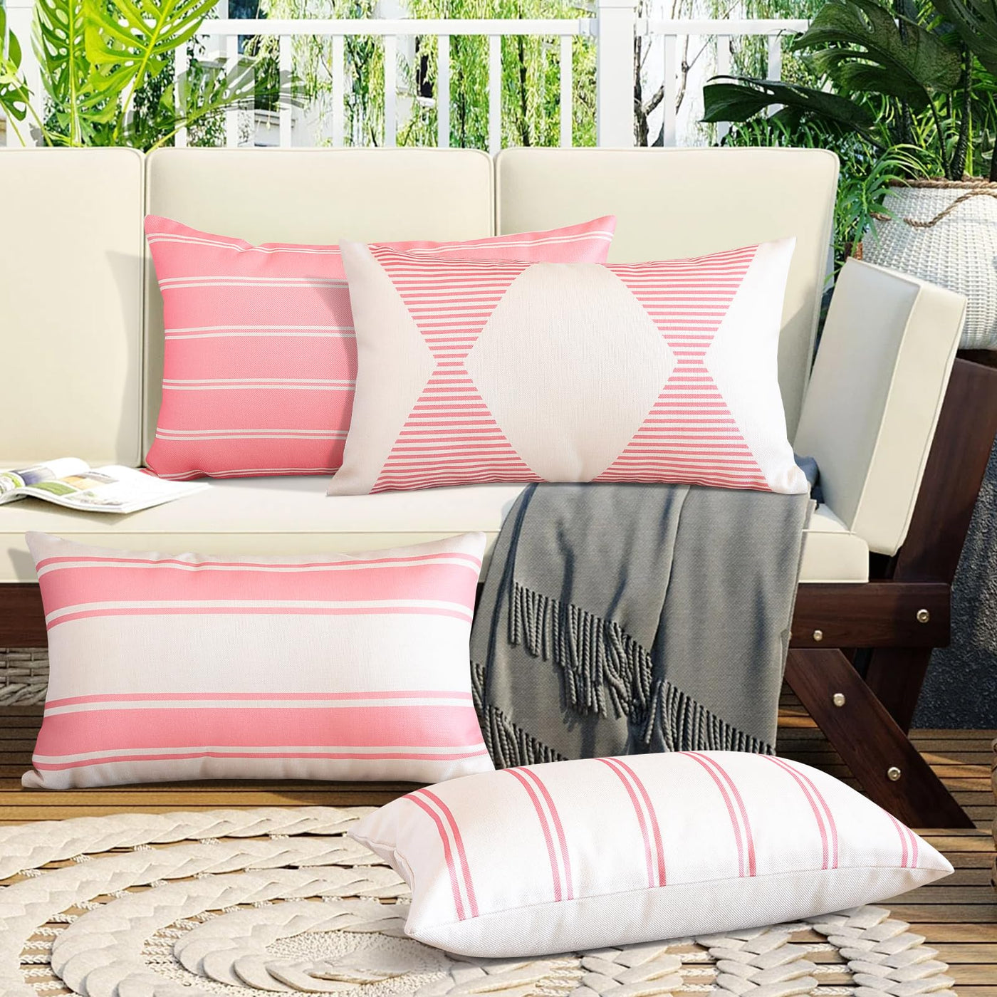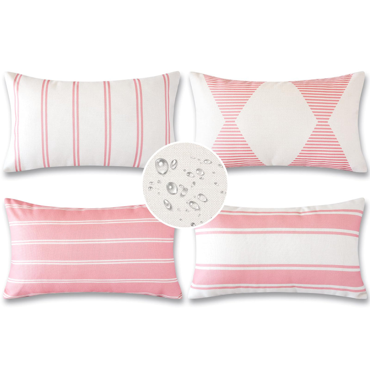 Otostar Outdoor Decorative Pillow Covers Waterproof Garden Throw Pillow Covers 12X20 Inch Cushion Case Geometry Throw Pillowcases Pillows Shell For Patio Furniture Couch Tent Balcony Pack Of 4 (Pink)