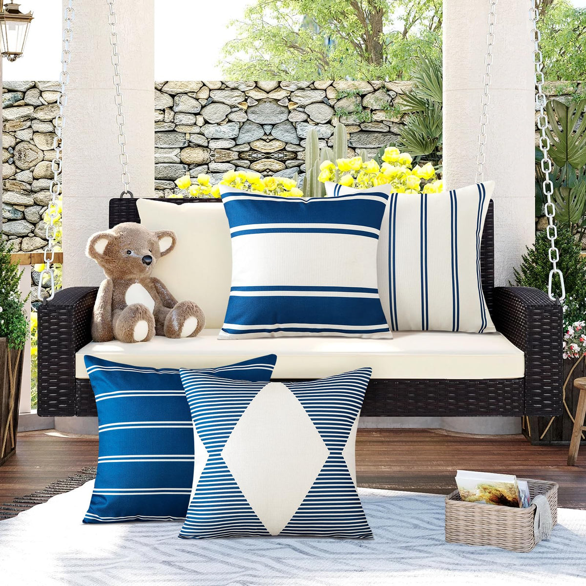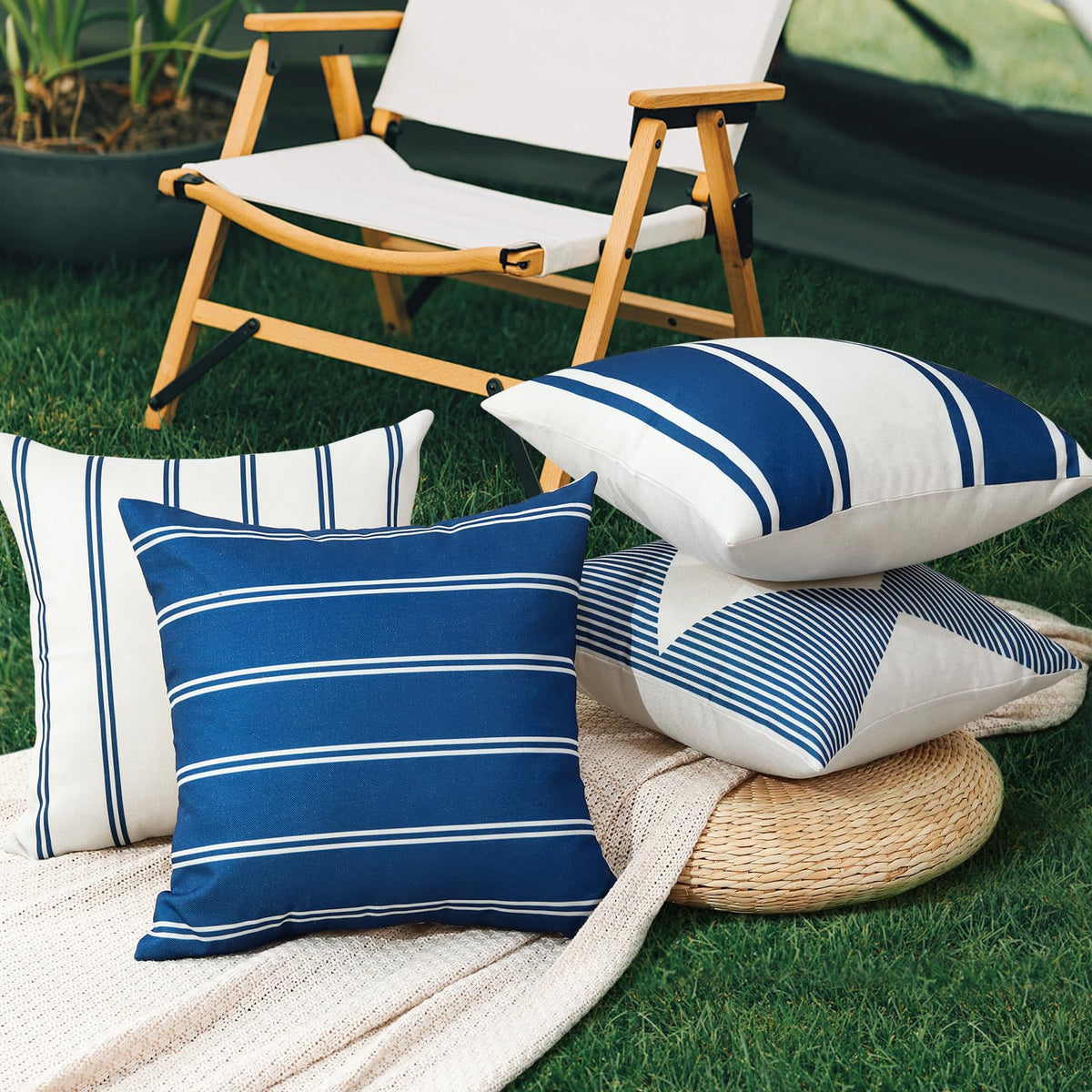 Otostar Outdoor Waterproof Decorative Throw Pillow Covers 20X20 Inch Geometry Pillow Cases Cushion Case Garden Pillow Covers Pillows Shell For Patio Furniture Couch Tent Balcony Set Of 4 (Navy Blue)