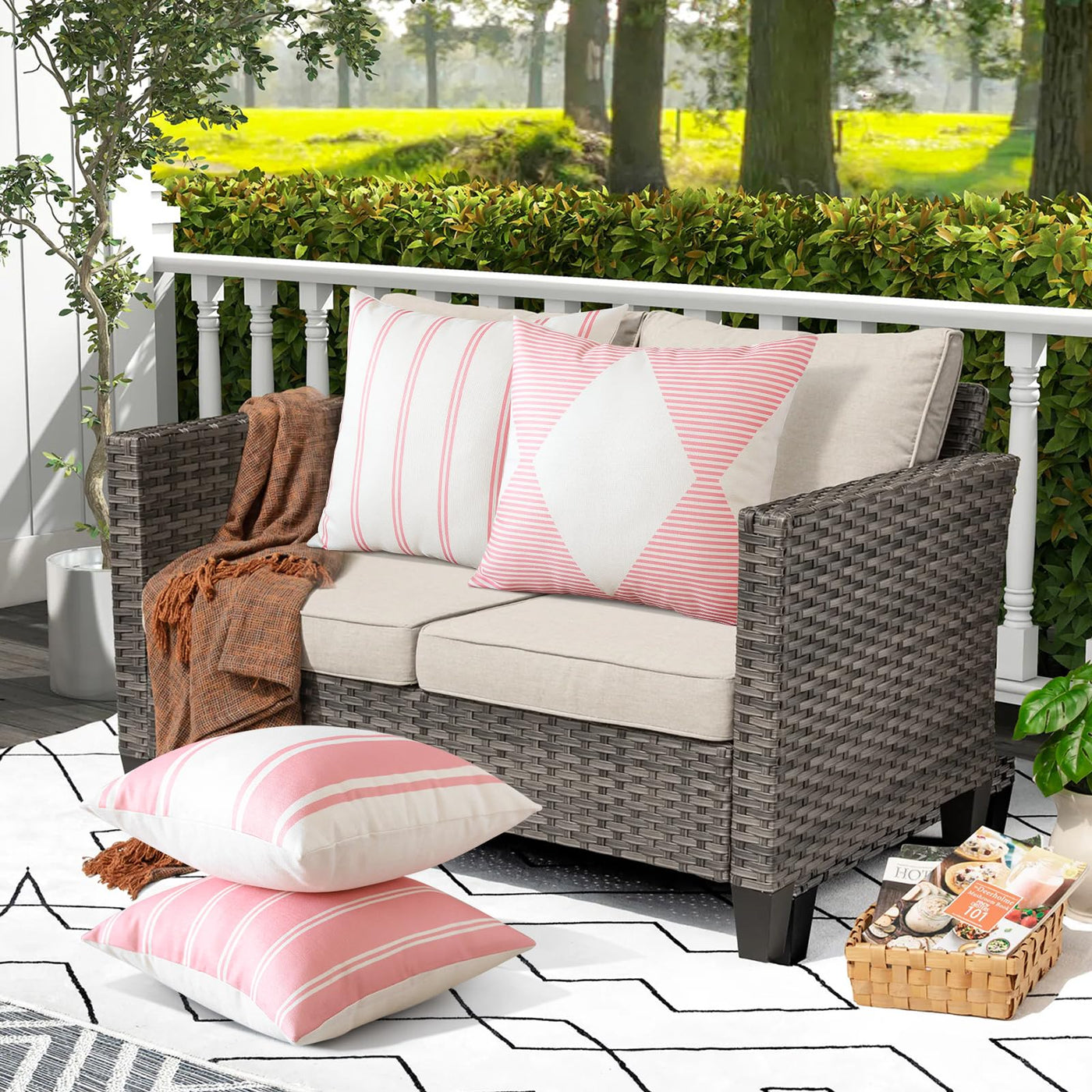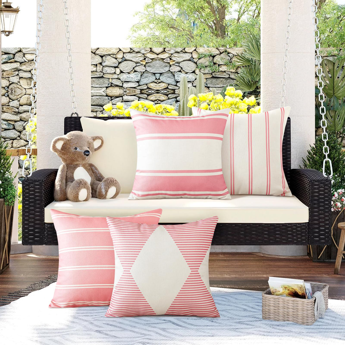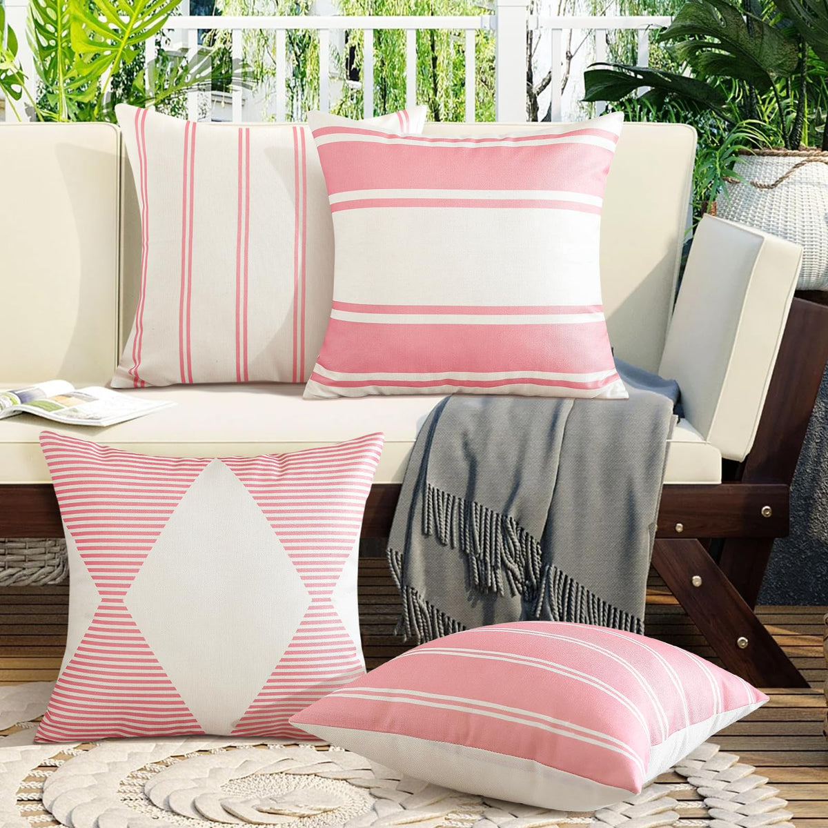 Otostar Outdoor Waterproof Decorative Throw Pillow Covers 20X20 Inch Geometry Pillow Cases Square Cushion Case Garden Pillow Covers Pillows Shell For Patio Furniture Couch Tent Balcony Set Of 4 (Pink)