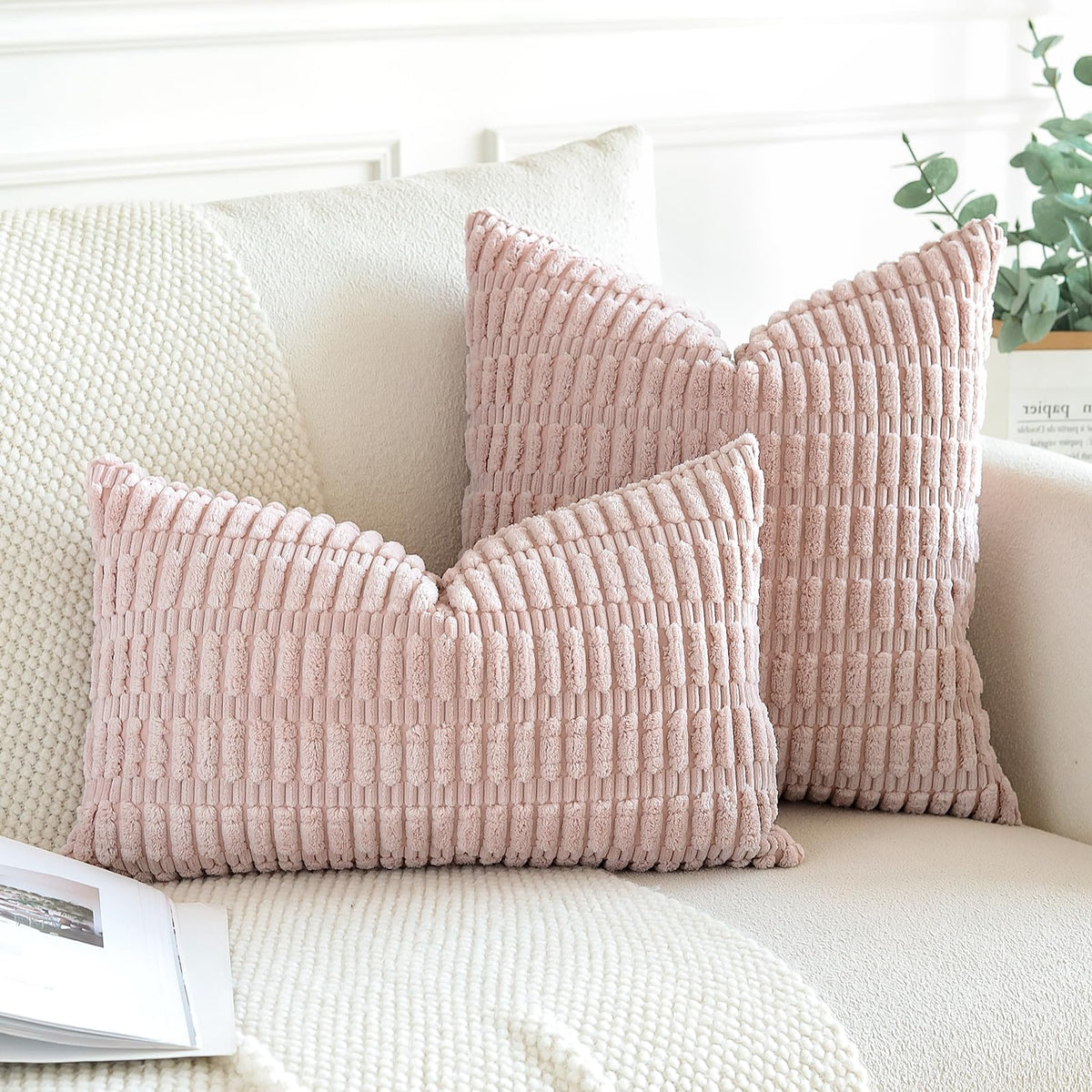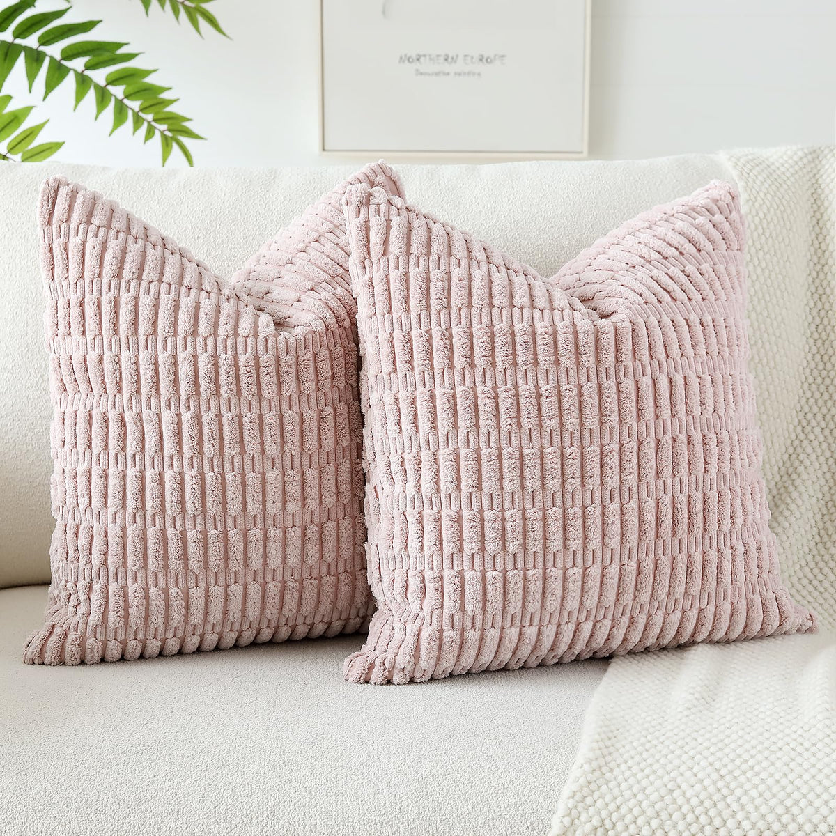 Otostar Pack Of 2 Corduroy Soft Decorative Throw Pillow Covers 18 X 18 Inch Soft Boho Striped Cushion Case Couch Farmhouse Home