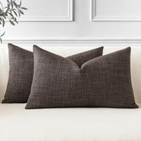 Otostar Pack Of 2 Throw Pillow Covers 12X20 Inch Linen Dark Brown Pillowcases Farmhouse Decorative Solid Pillow Covers 30X50 Cm