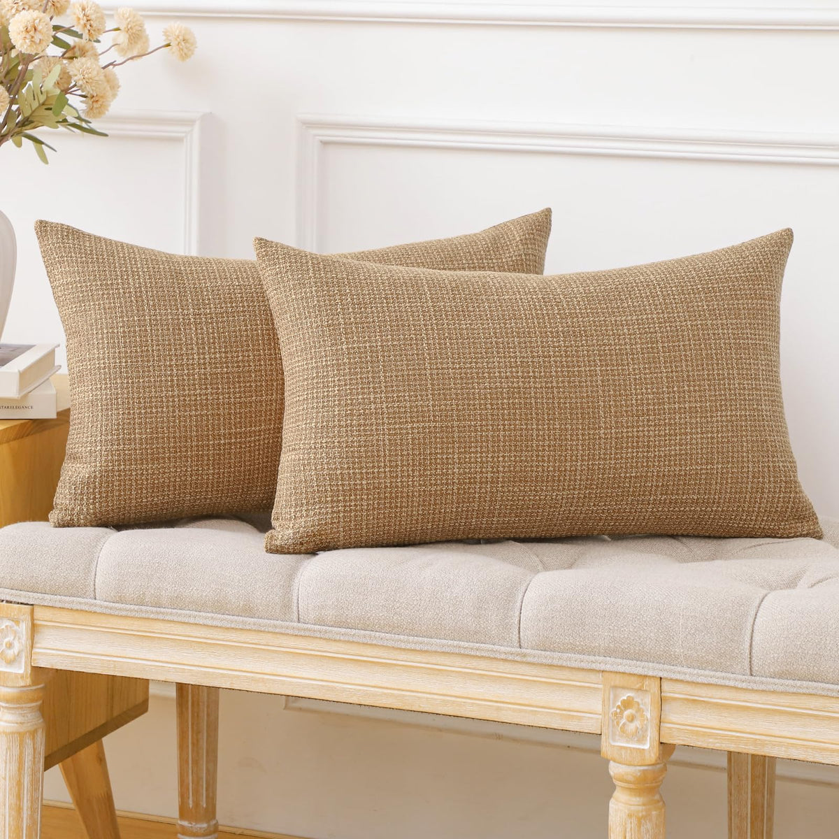 Otostar Pack Of 2 Throw Pillow Covers 12X20 Inch Linen Light Brown Pillowcases Farmhouse Decorative Solid Pillow Covers 30X50 Cm