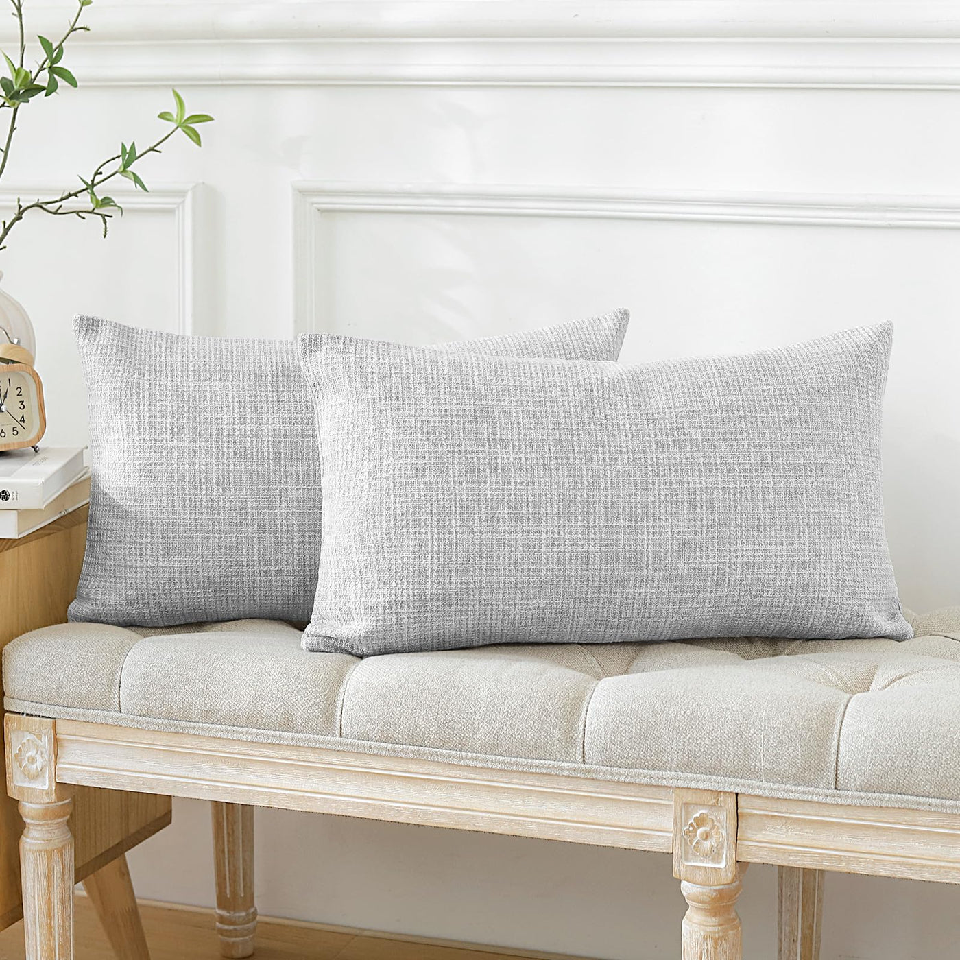 Otostar Pack Of 2 Throw Pillow Covers 12X20 Inch Linen Light Grey Pillowcases Farmhouse Decorative Solid Pillow Covers 30X50 Cm