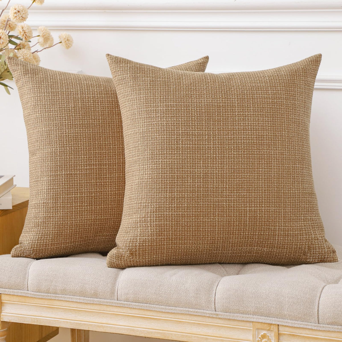 Otostar Pack Of 2 Throw Pillow Covers 16X16 Inch Linen Light Brown Pillowcases Farmhouse Decorative Solid Pillow Covers 40X40 Cm