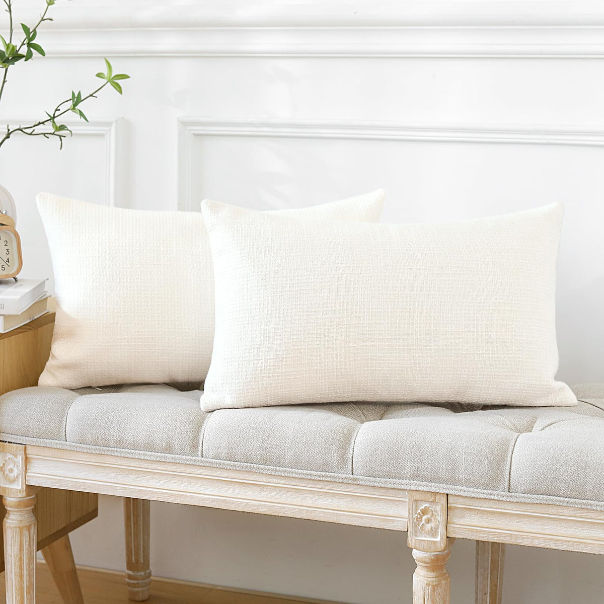 Otostar Pack Of 2 Throw Pillow Covers 16X24 Inch Linen Cream Pillowcases Farmhouse Decorative Solid Pillow Covers 40X60 Cm Lumba