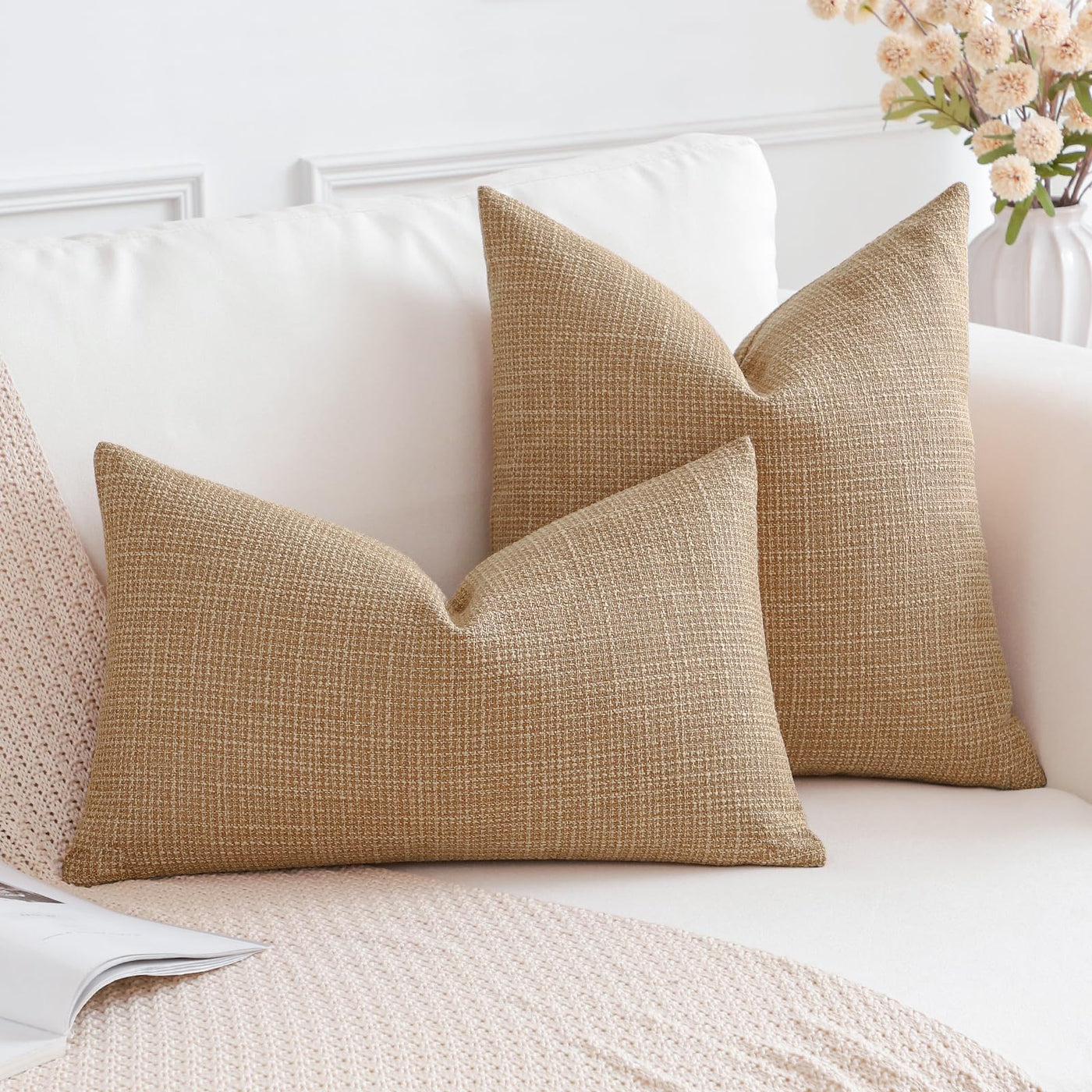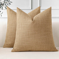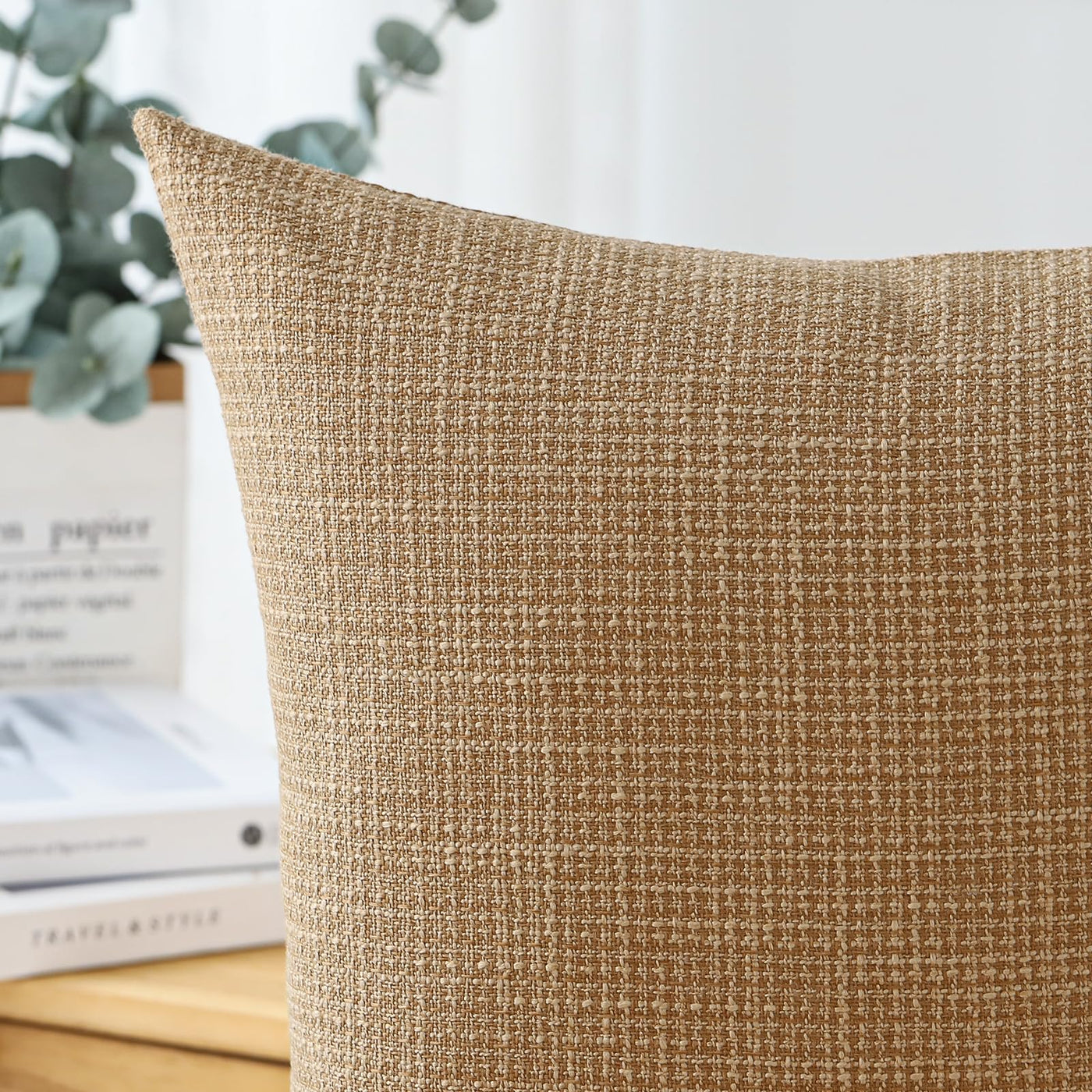 Otostar Pack Of 2 Throw Pillow Covers 18X18 Inch Linen Light Brown Pillowcases Farmhouse Decorative Solid Pillow Covers 45X45 Cm