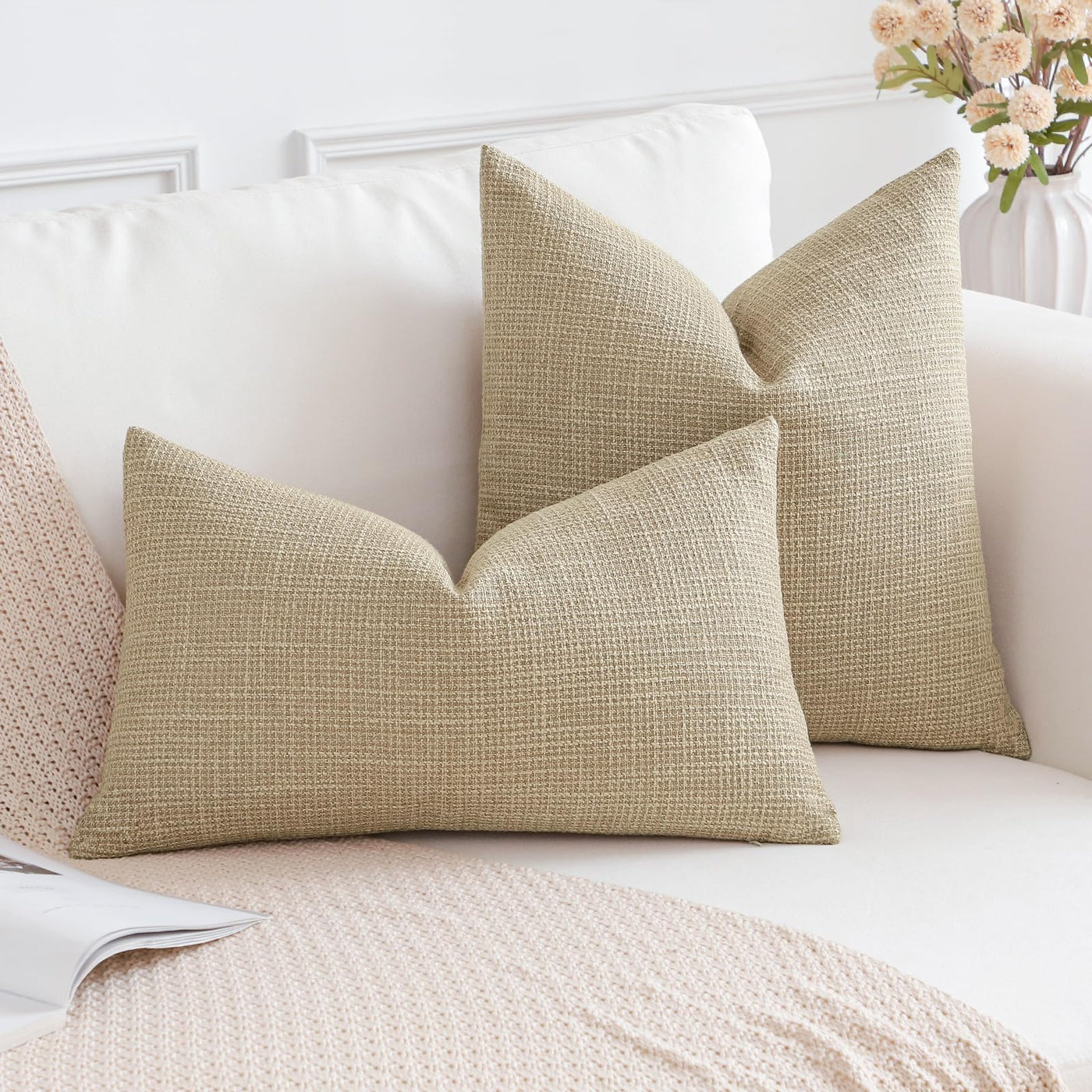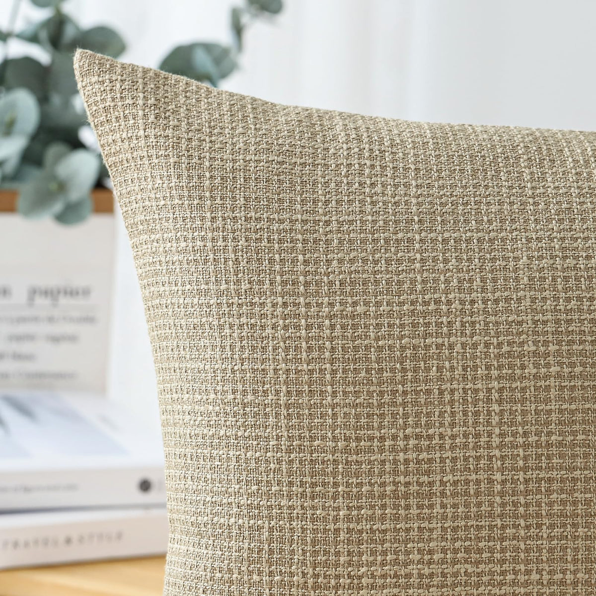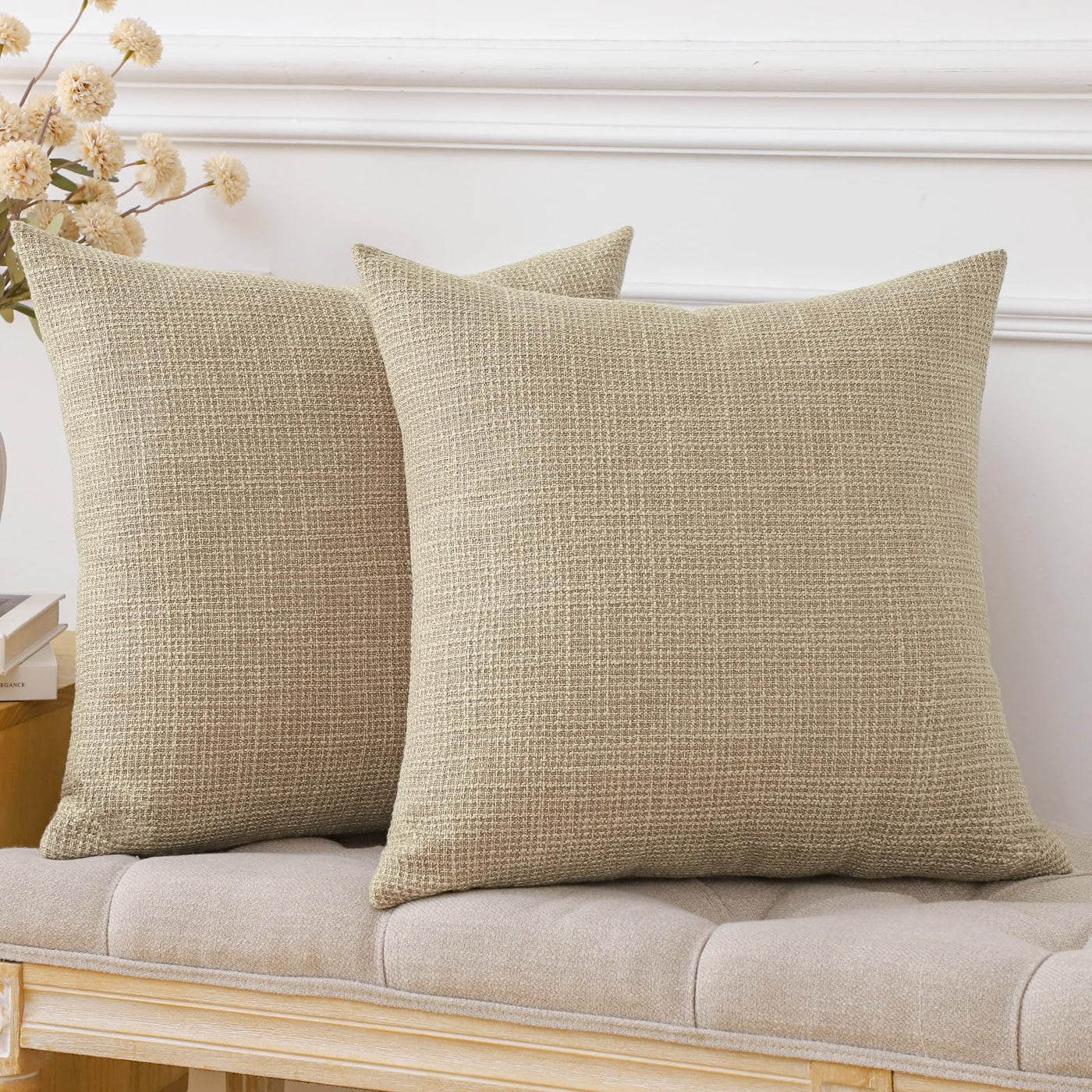 Otostar Pack Of 2 Throw Pillow Covers 18X18 Inch Linen Light Tan Pillowcases Farmhouse Decorative Solid Pillow Covers 45X45 Cm S