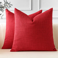 Otostar Pack Of 2 Throw Pillow Covers 18X18 Inch Linen Red Pillowcases Christmas Decorative Solid Pillow Covers 45X45 Cm Square
