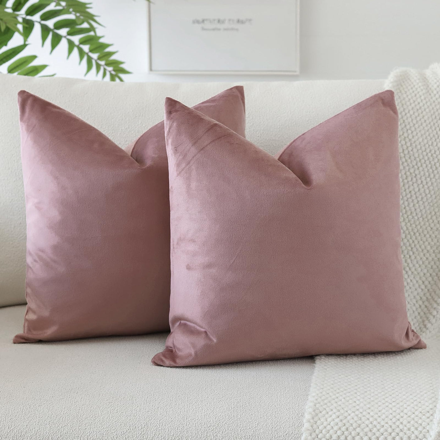 Otostar Set Of 2 Soft Velvet Throw Pillow Covers Solid Color Cushion Cover Pillowcases Home Decor For Patio Sofa Car, 18X18 Inch 45X45Cm